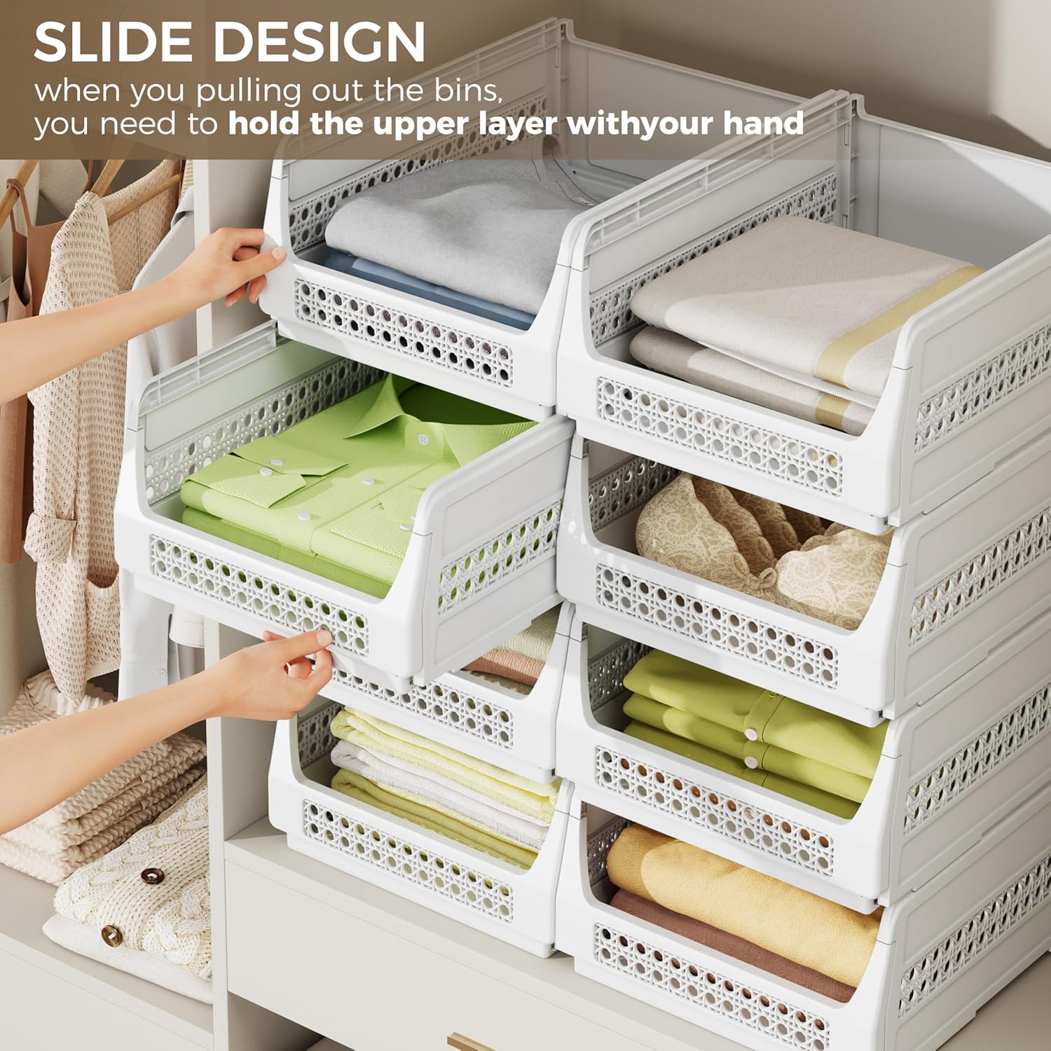 【Multi-layer Stacking drawer Style】 Each closet shelf is designed with a stable base and top groove, which can achieve multi-layer stacking while ensuring stability during stacking. It is also equipped with an easy to slide track, which can easily pull the basket out of the stack, making it a perfect combination of flexible storage and convenient retrieval.