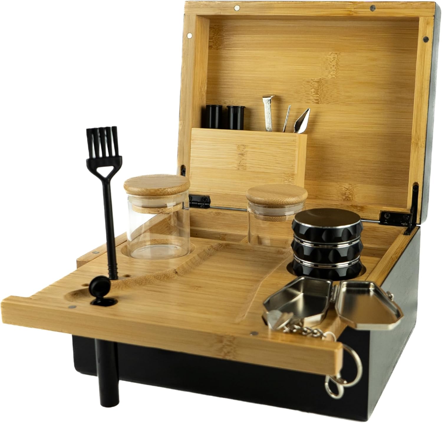 SMART COMPARTMENTAL DESIGN WITH WOODEN TRAY Featuring multiple internal compartments and a removable wooden tray, this organizer allows you to keep small personal items, accessories, and essentials neatly arranged and easy to access.