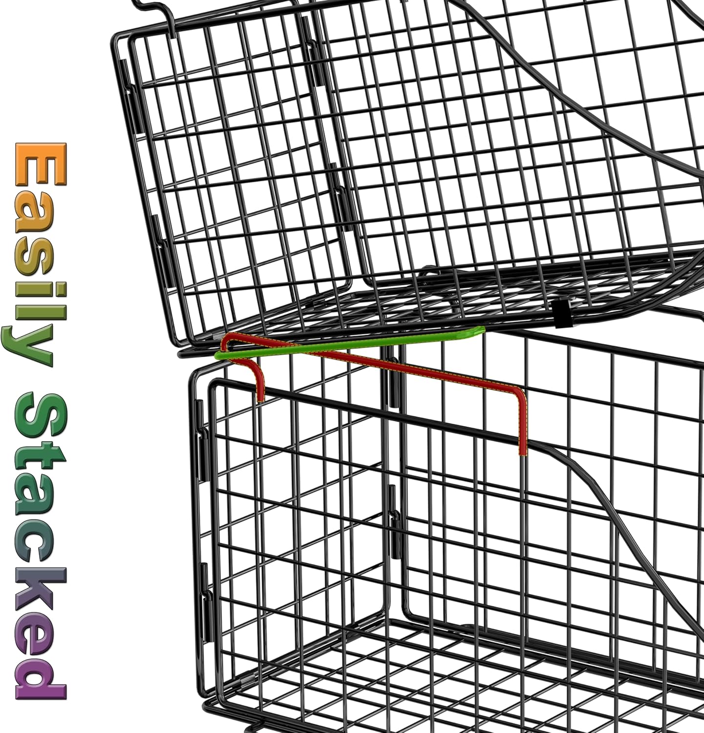 【Build-in Handles for Easy Movement】Equipped with built-in handles on each basket, this storage solution allows for easy transportation and maneuverability. By jamming the wire at the bottom of the basket, the handles provide added support and stability to the entire stack. With its durable construction and user-friendly design, this can organizer is a versatile solution for your storage needs.