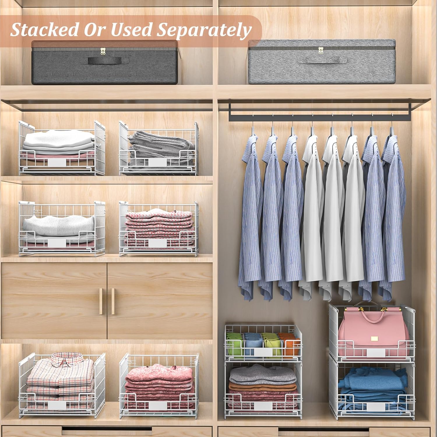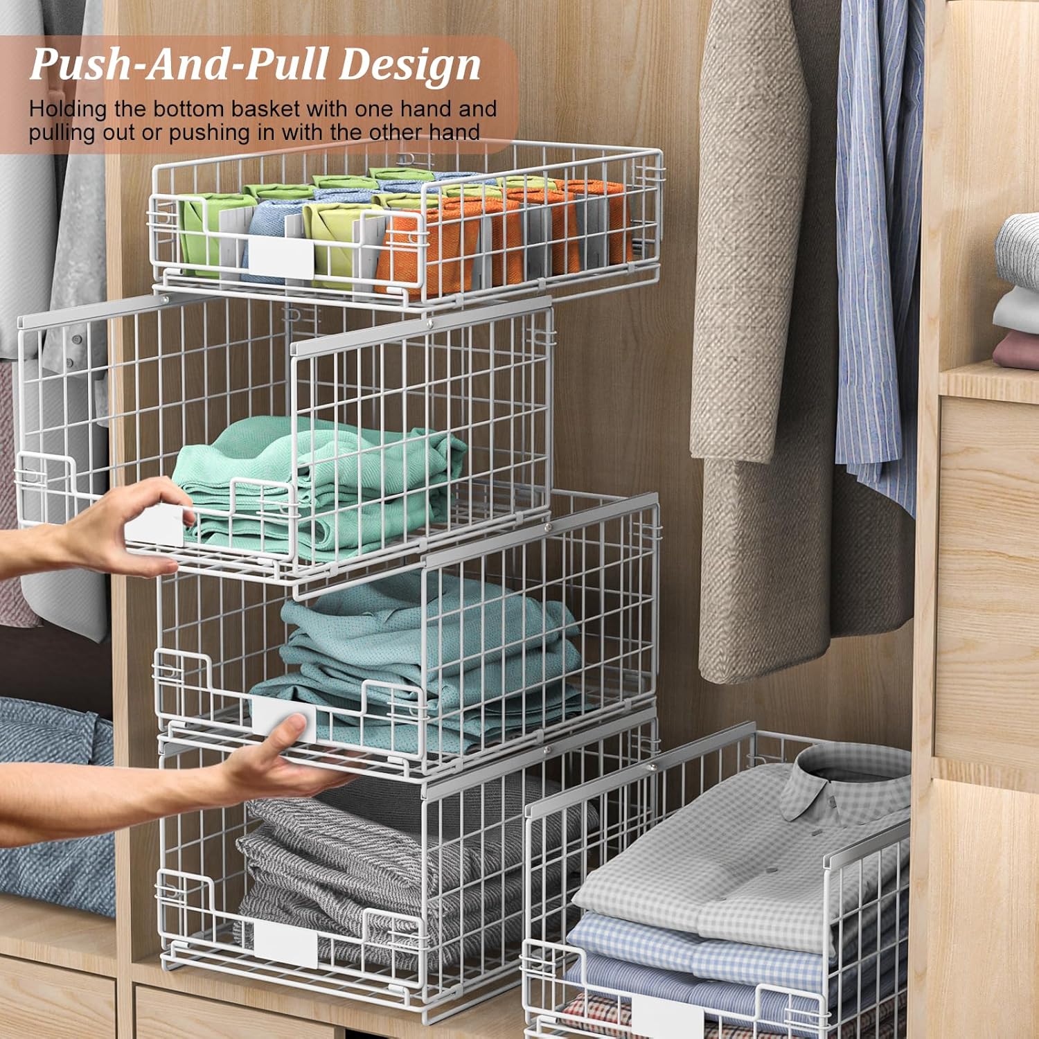 ใ๐๐ช๐ก๐ก-๐๐ช๐ฉ ๐ฟ๐๐จ๐๐๐ฃใ–There is a special pull-out track set and the pull-out design makes it as a sliding closet organizer. When need stackable pull-out wardrobe baskets to save space, the role of this product is revealed, just hold the basket above one hand, the wall support fixed in place, the other hand gently pull can easily retrieve the clothes; Needs use alone time, then can place snacks, drinks, vegetables and fruits and other heavy things.
