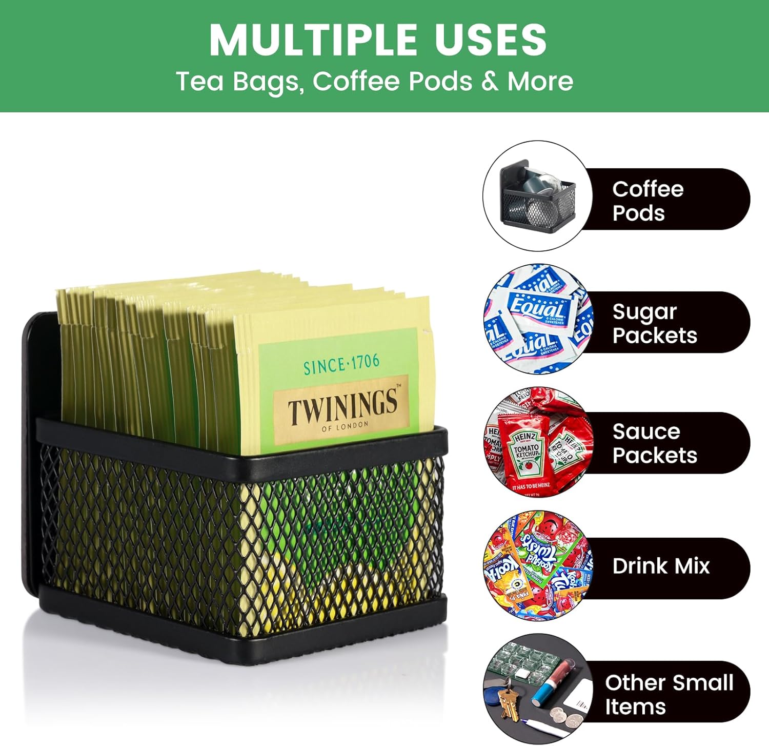 Metal Tea Holder Organizer: Made from high-quality metal, this tea box organizer storage box ensures durability and long-lasting use. Its sturdy construction supports the weight of tea bags or other small items without slipping.