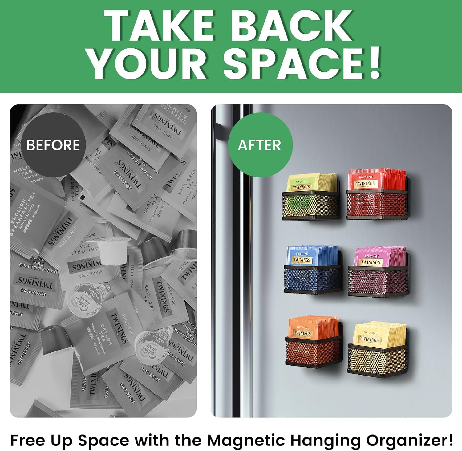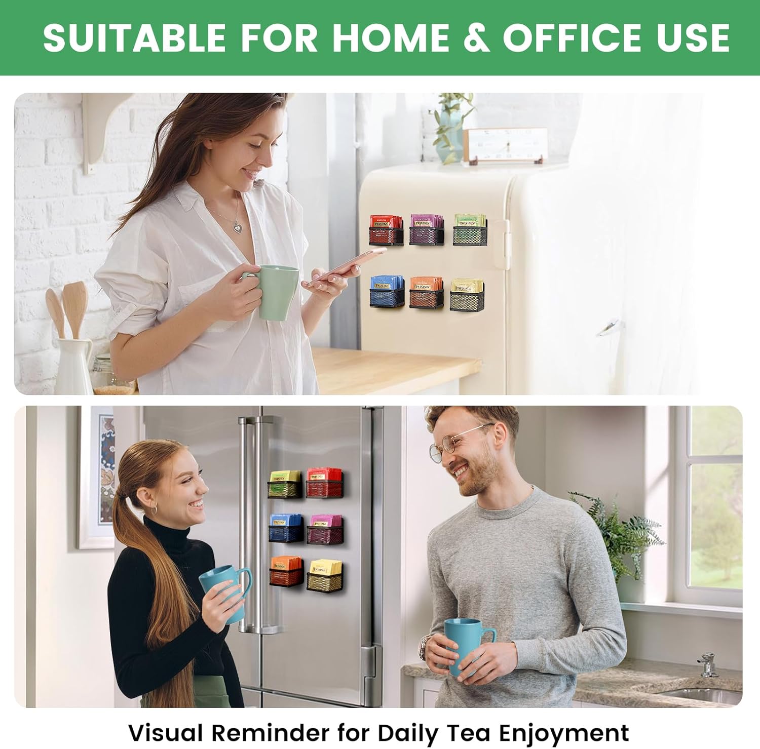 Innovative Tea Bag Organization: Our 6-pack magnetic tea display containers keep your tea collection neatly organized by flavor, ensuring easy access to your favorite teas at any time.