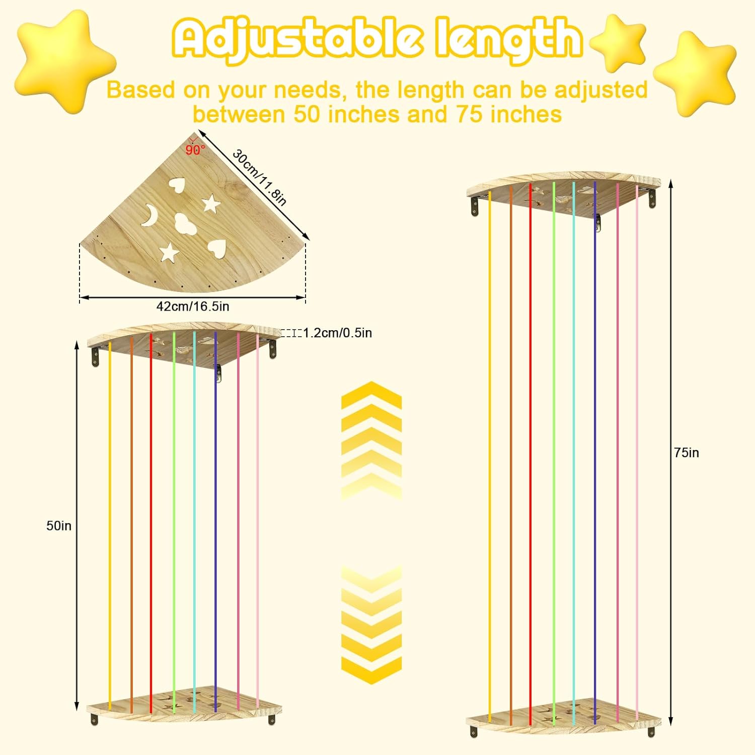 Wooden corner plush toy storage rack, wooden plush toy rack with star pattern and adjustable length, especially for kindergarten, preschool, playroom, bedroom