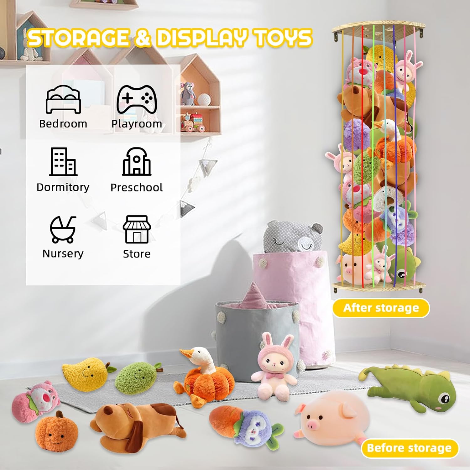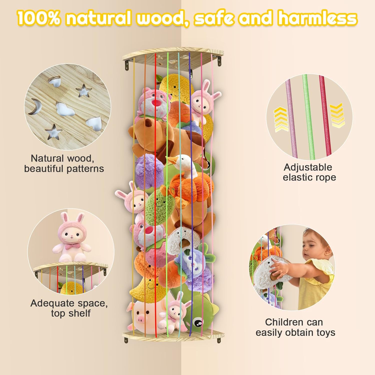 🌲【Strong and Durable Plush Toy Storage】Our meticulously handcrafted pine wood storage is a sturdy solution for organizing stuffed animal toys. With a thickness of 0.47″, it has a strong carrying capacity and durability, making it perfect for decluttering spaces and creating a neat and spacious environment.