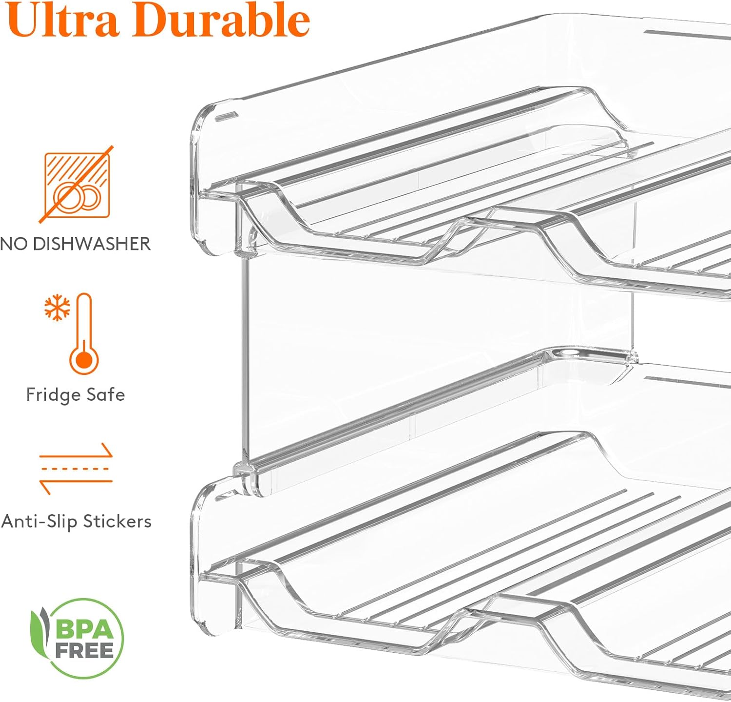Stackable Design: The shelves can be firmly stacked on top of each other for maximum space utlization. This set of 2 shelves can hold 2 bottle of wine in each shelf, they stays in place and does not roll around, easily pull out or push in bottles for accessibility. Keep your kitchen, cupboards and pantry organized with this storage set. You can also place them inside the refrigerator to chill up your wine.