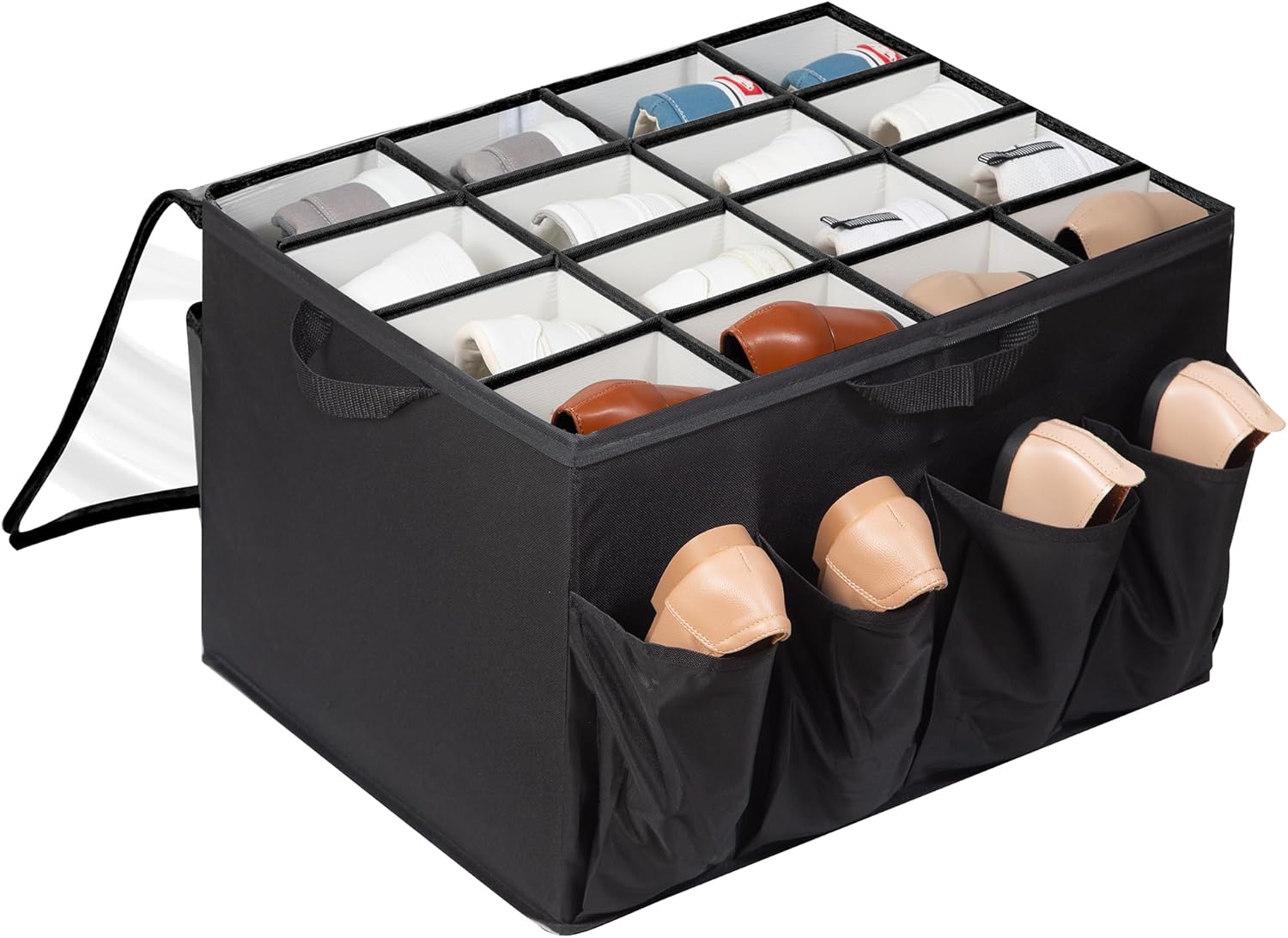 With 4 durable and well-made handles, it is very easy for you to carry and move this shoe organizer.