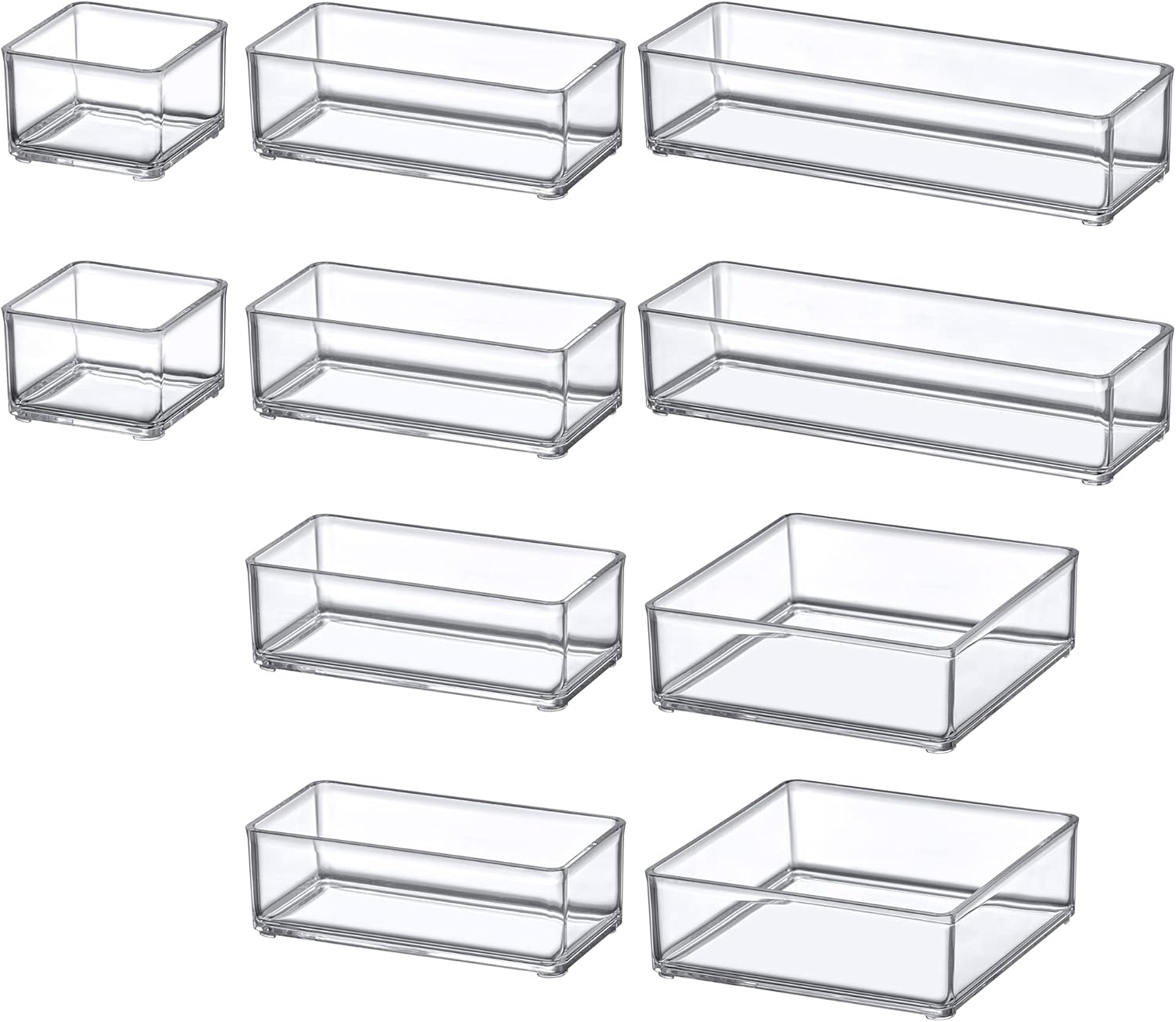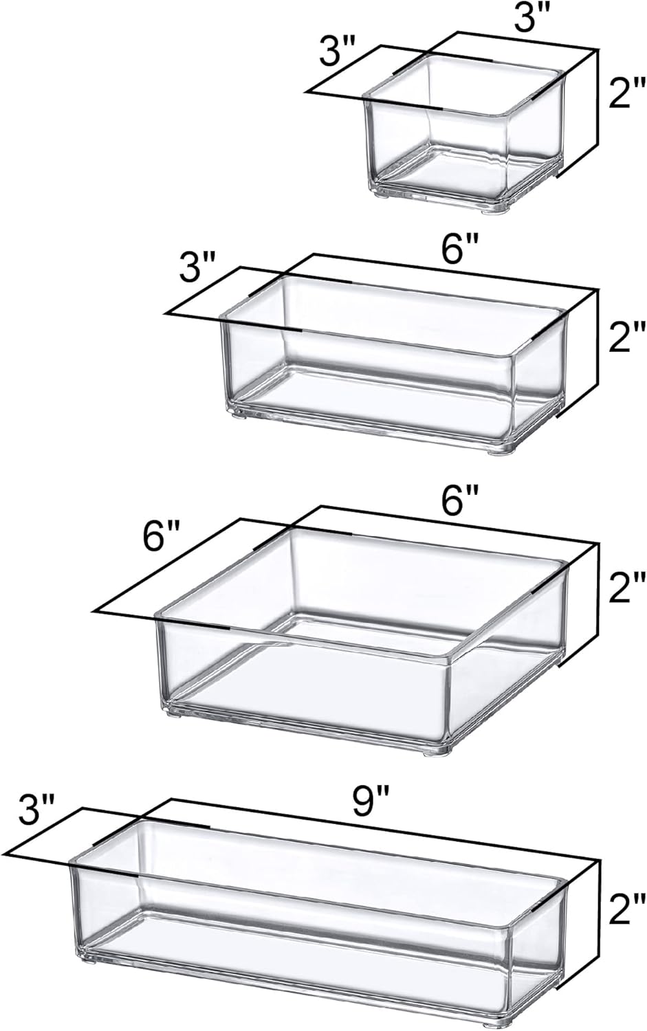 [GREAT STORAGE] Clear plastic organizers for storing beauty products, office supplies, decorative items, and more. Perfect solution for organizing items and keeping the vanity or drawer neat and clean.