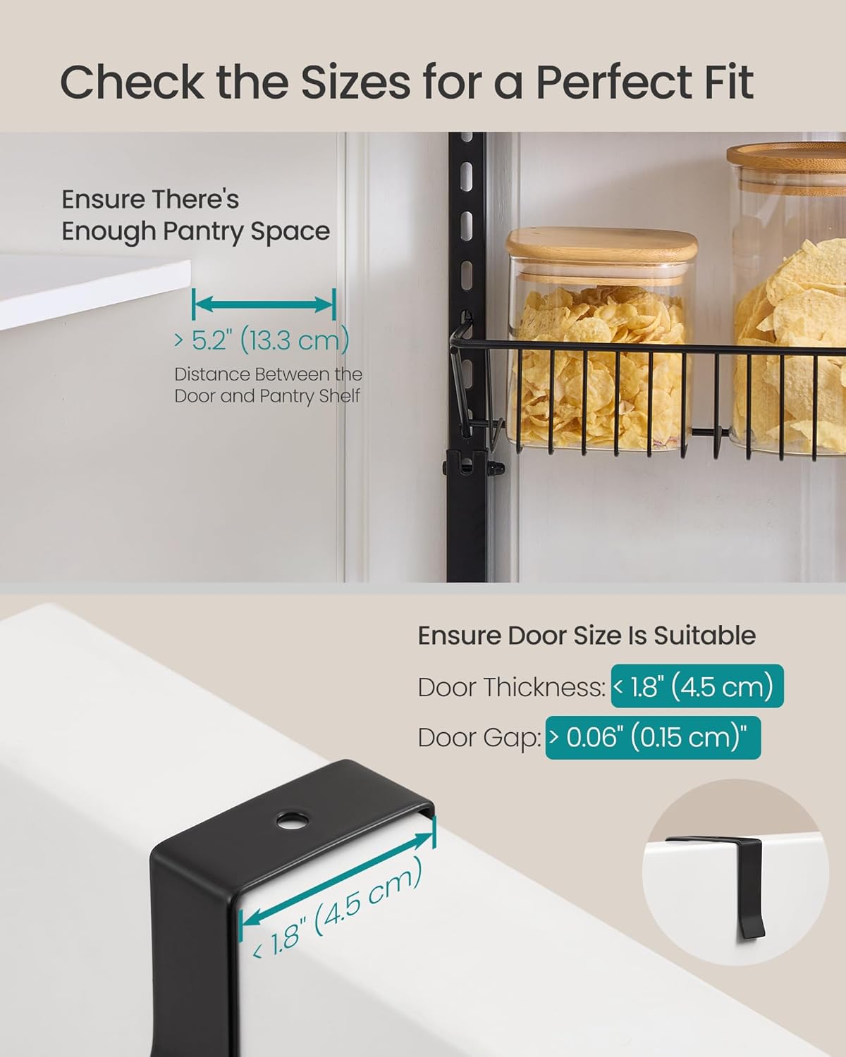 【2 INSTALLATION OPTIONS】Install these kitchen organizers with storage baskets over the door or mount it on the wall. Suitable for kitchens, bathrooms, pantries, or closets, it offers flexible storage solutions to match your space and preferences