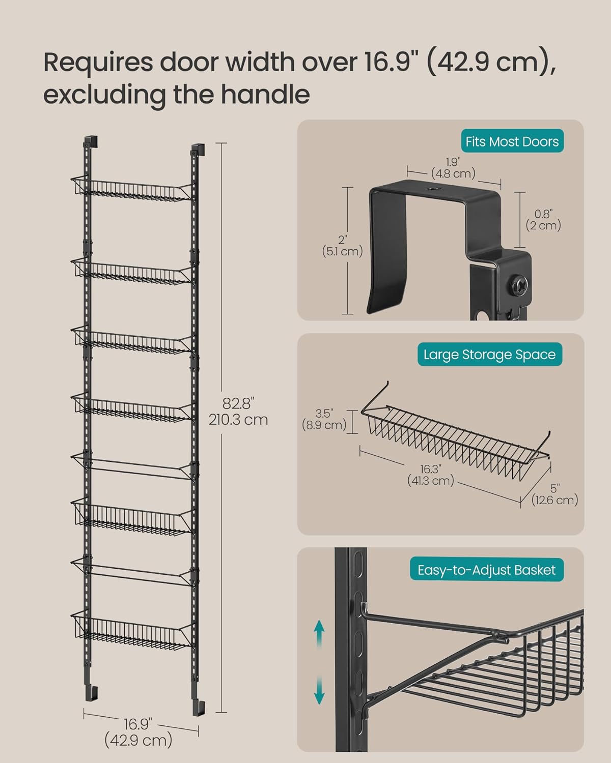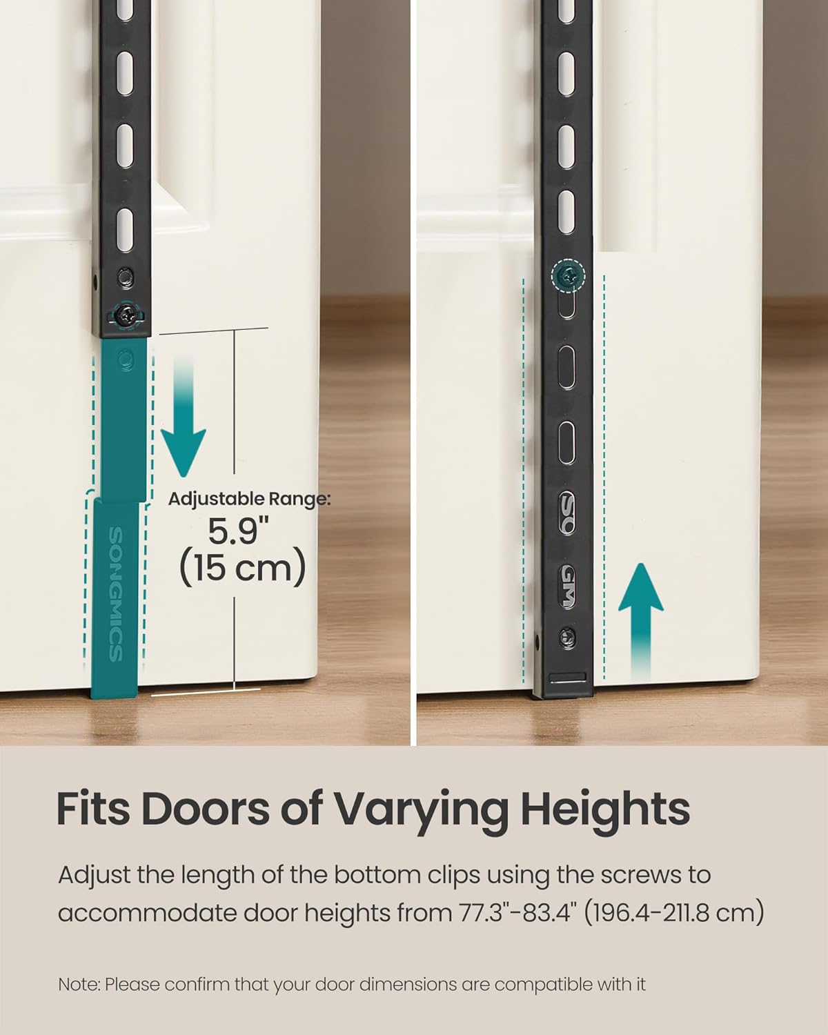 【ENSURE THE PERFECT FIT】This over-the-door organizer is designed to fit doors up to 1.8″ thick and features adjustable bottom clips to accommodate door heights up to 82.8″. Please measure your door to ensure compatibility