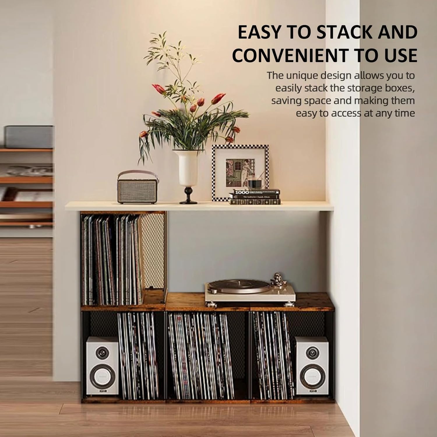 【FUNCTIONALITY & DESIGN】This premium vinyl record storage solution is designed to hold 90-120 records, offering a perfect blend of organization, protection, and style. The adjustable angle feature allows you to customize the vinyl record box to your preferred viewing or access position, enhancing both functionality and aesthetic appeal. The modular design enables random stacking and combination, making it easy to adapt to your living space while maintaining a clean, organized, and visually interesting environment. Whether you’re a vinyl enthusiast or a casual collector, this storage solution enhances both functionality and aesthetics!