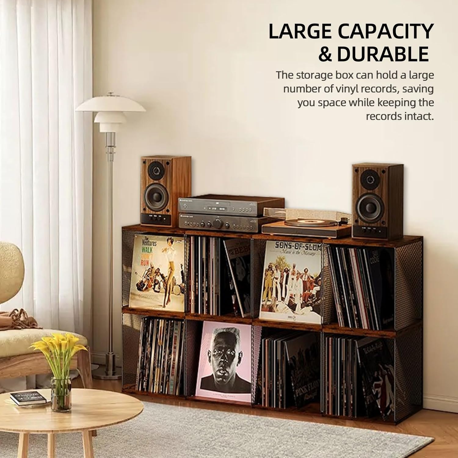 【PERFECT PLACEMENT】Versatile and stylish all in one, this record storage box can be seamlessly integrated into any room. Place it next to your sofa, TV, or in any corner that needs a touch of organization and artistry. Its sleek design doubles as a decorative piece, adding a natural, artistic element to your living space. Whether used as a functional storage solution or a statement piece, it enhances the ambiance of your home.