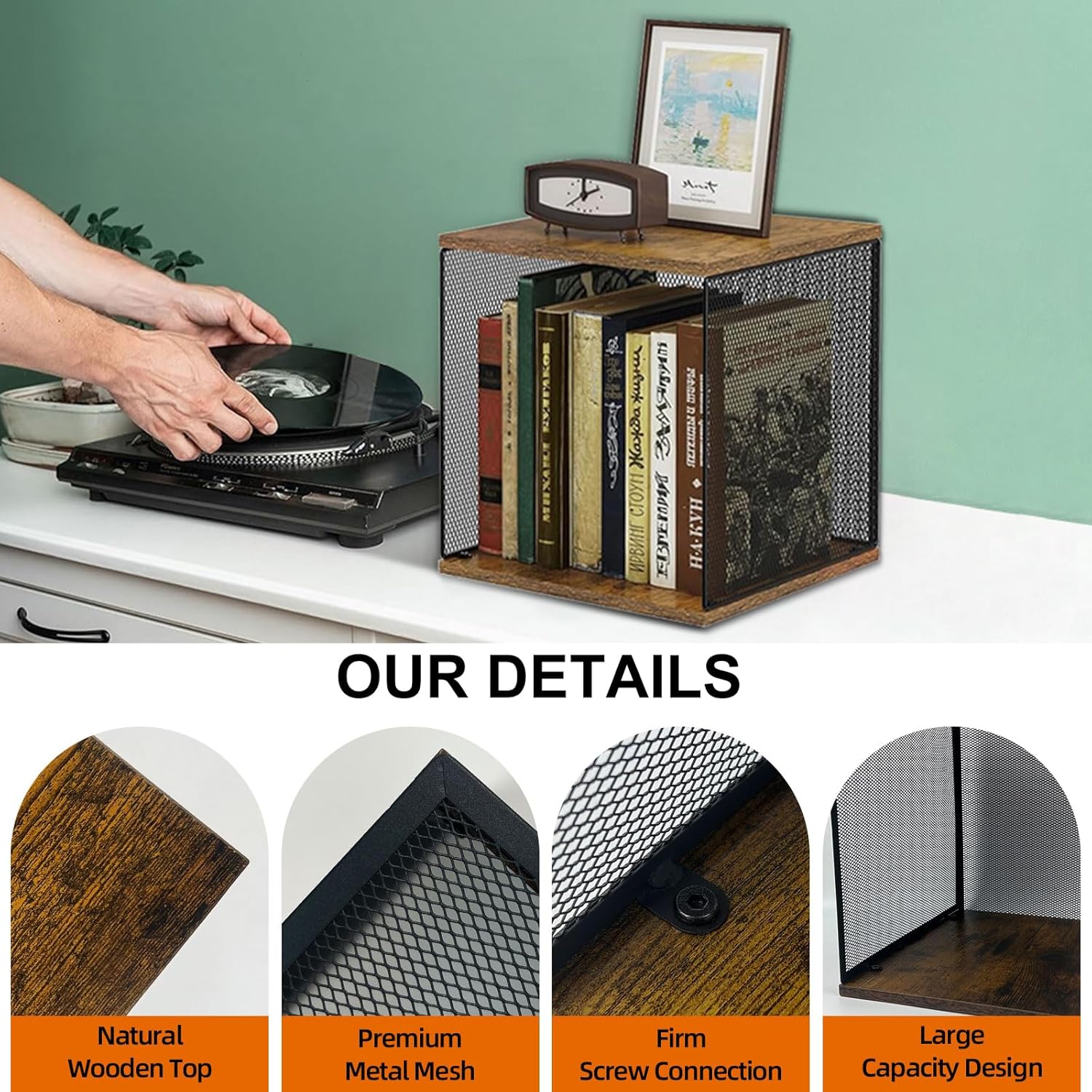 【PREMIUM MATERIAL】Crafted from eco-friendly composite materials with a natural wood texture, this record storage furniture brings a touch of nature into your home. Morover, the combination of a sturdy metal frame and lightweight composite materials ensures durability while keeping the overall weight manageable, making it easy to move and rearrange as needed.Truly achieve intimate optimization and upgrading from customer experience