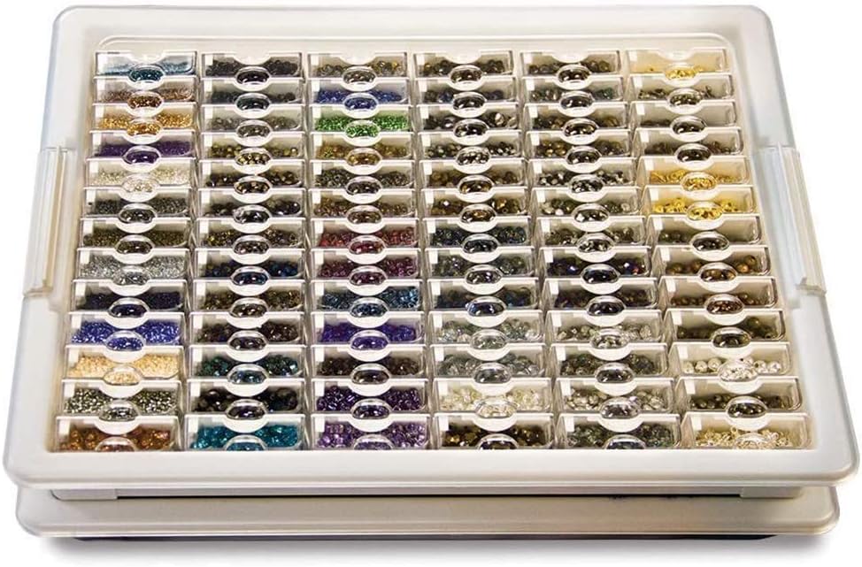 Dimensions measure 13.75 inches long, 10.50 inches wide, and 2 inches tall, making these art organizers and storage spacious enough to sort seed beads, crystals, and more