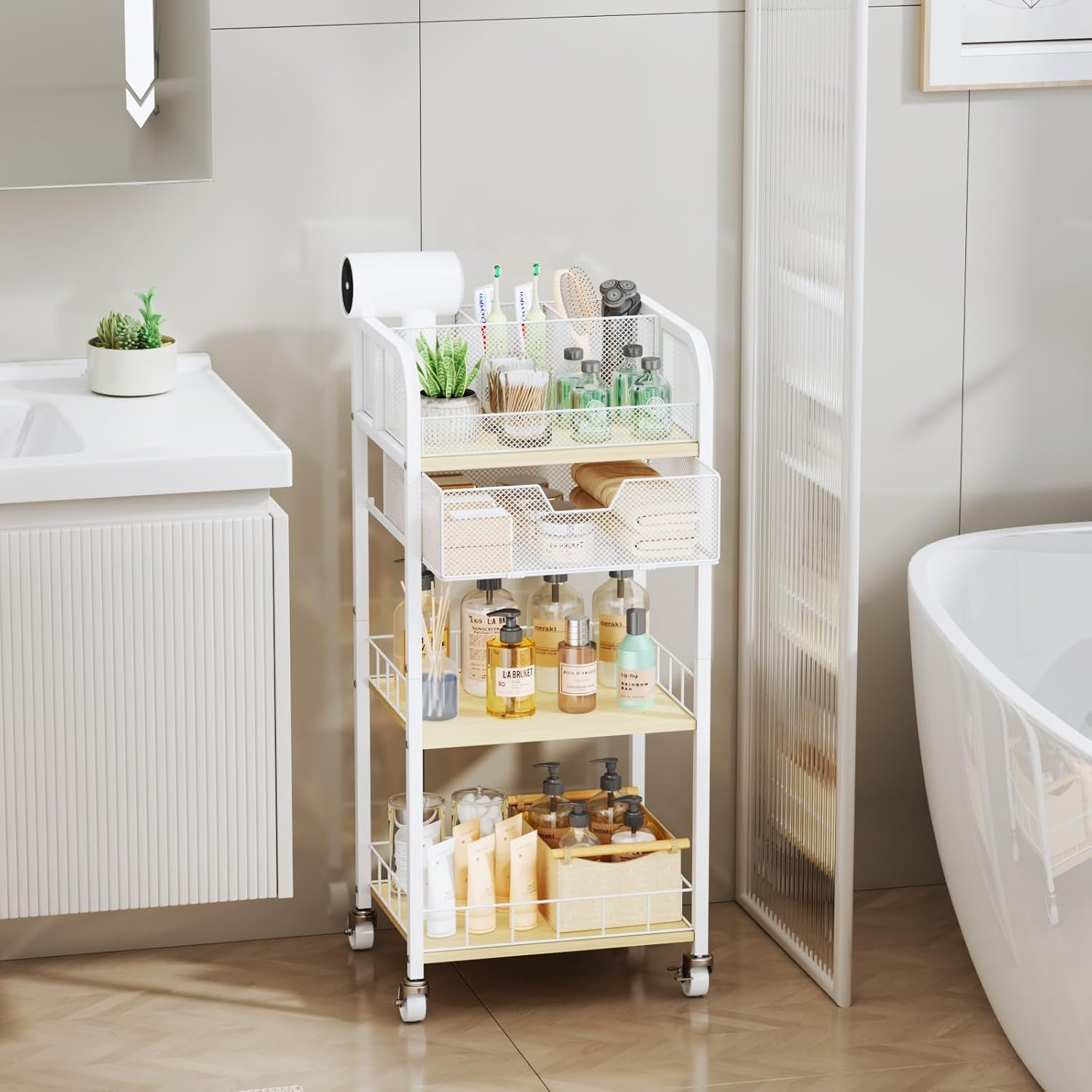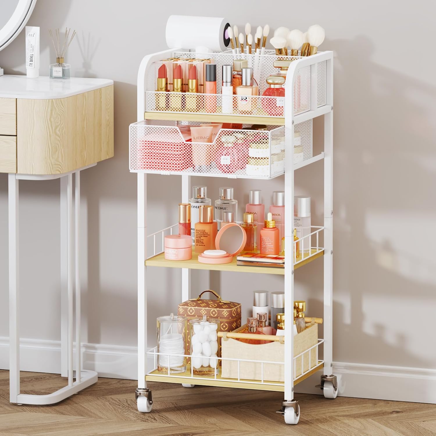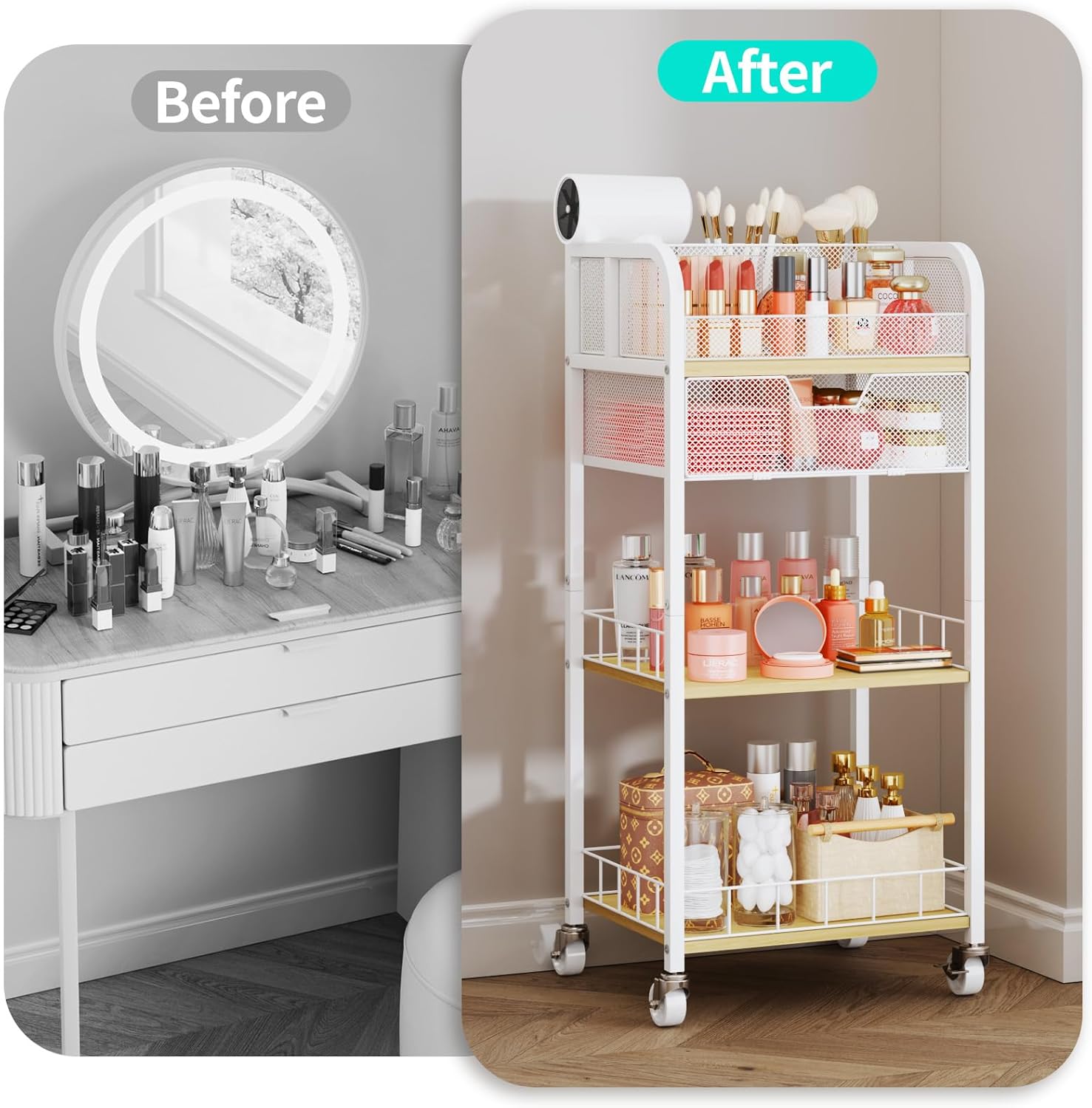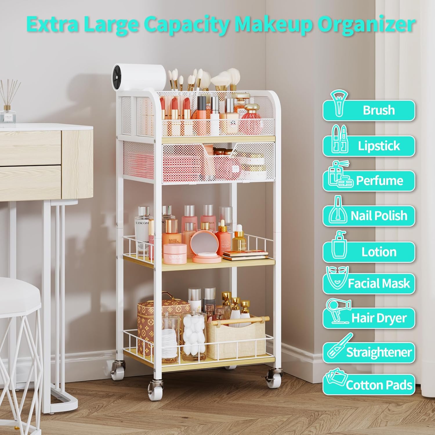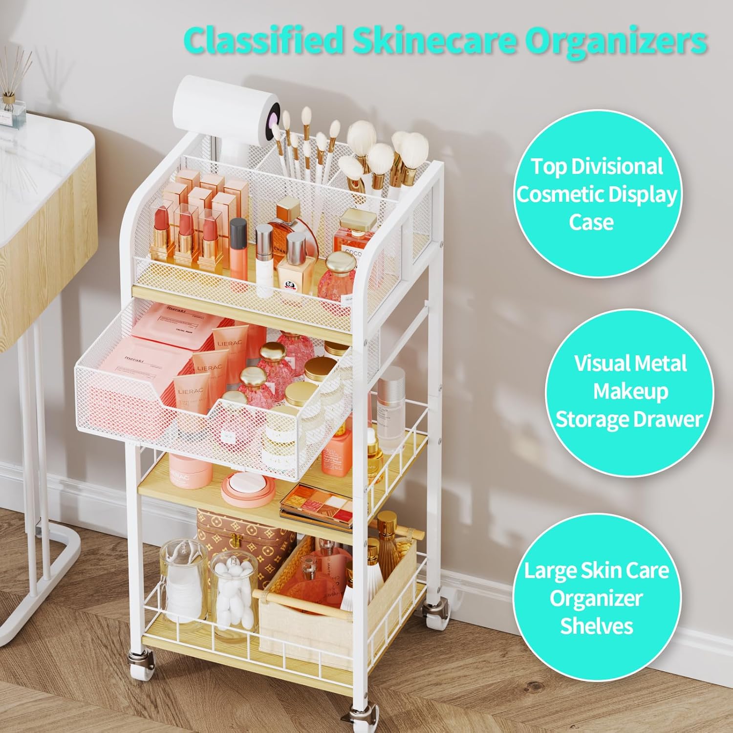 [Elegant and Modern Look]: The minimalist design of this makeup organizer cart complements any bathroom vanity, bedroom, or dressing area, enhancing your beauty space with style