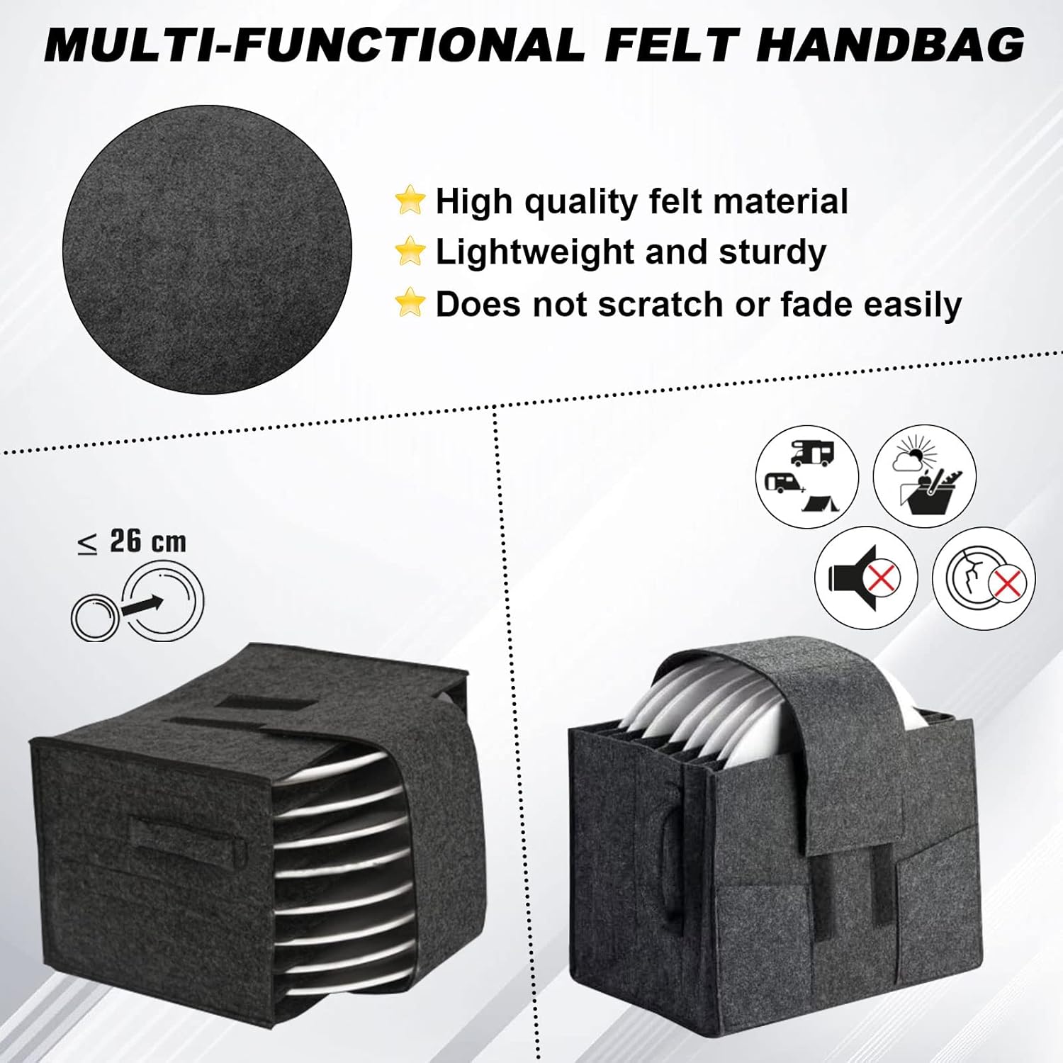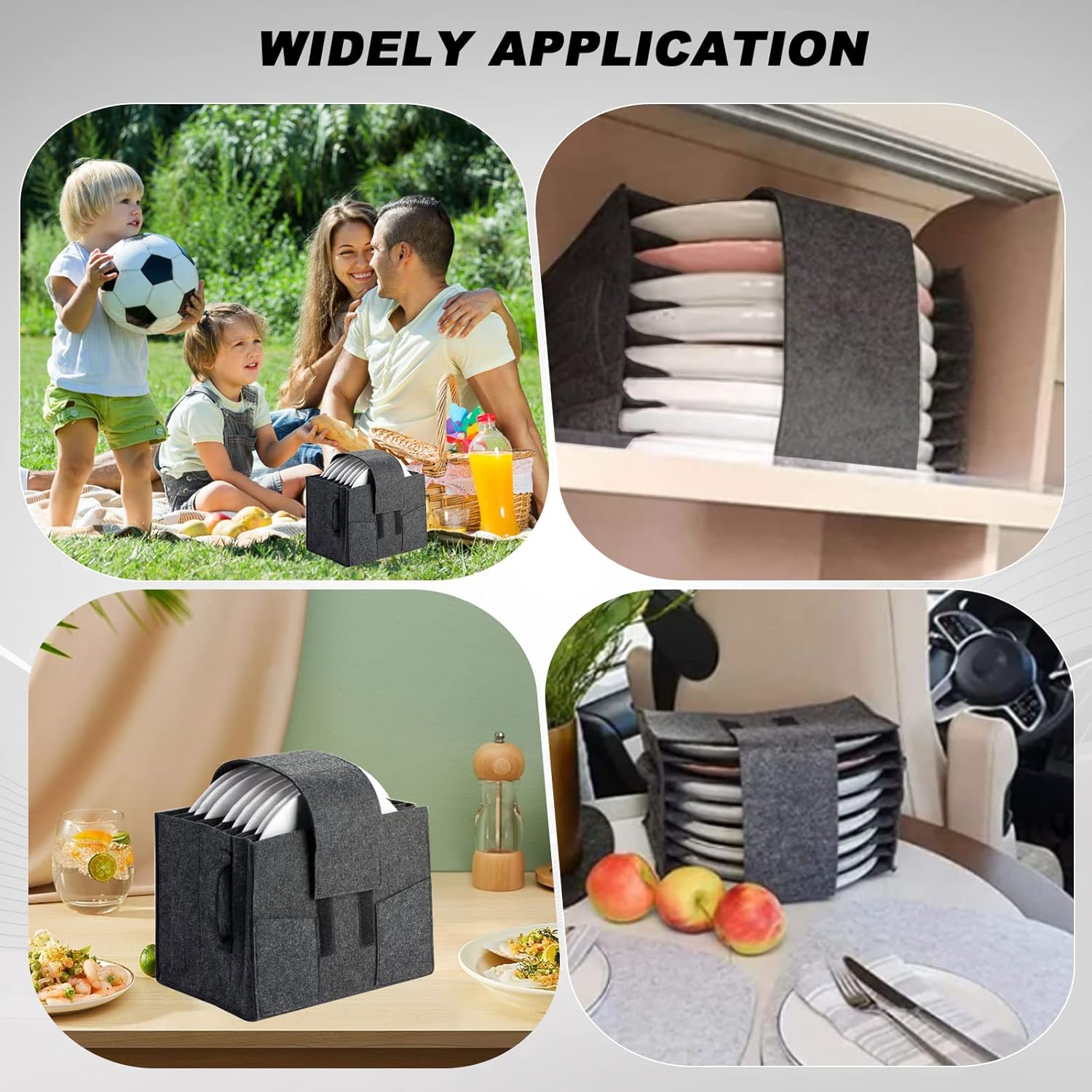 Versatile Use: This plate organizer is a versatile storage solution for a variety of scenarios, providing the perfect protection for your plates during picnics, camping trips, or home use, and ensuring that they’re always organized and ready to go.Whether classic for camping holidays, in the cupboard, shelf, sailing boat, motor boat, or when traveling, our felt dinnerware holder always fits and is guaranteed to fulfill your individual purpose