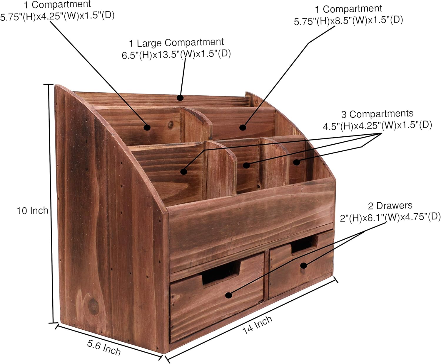 With 6 Compartments and 2 Drawers, This Over-sized Organizer Will Hold All of Your Desk Accessories, Mail, or Office Supplies.