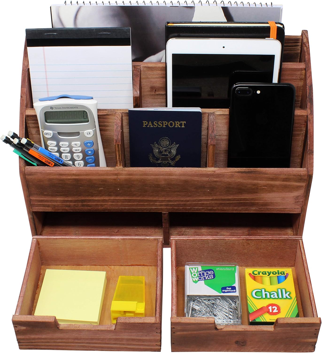 TONS OF ROOM – With 6 Compartments and 2 Drawers, This Oversized Organizer Will Hold All of Your Desk Accessories, Mail, or Office Supplies.