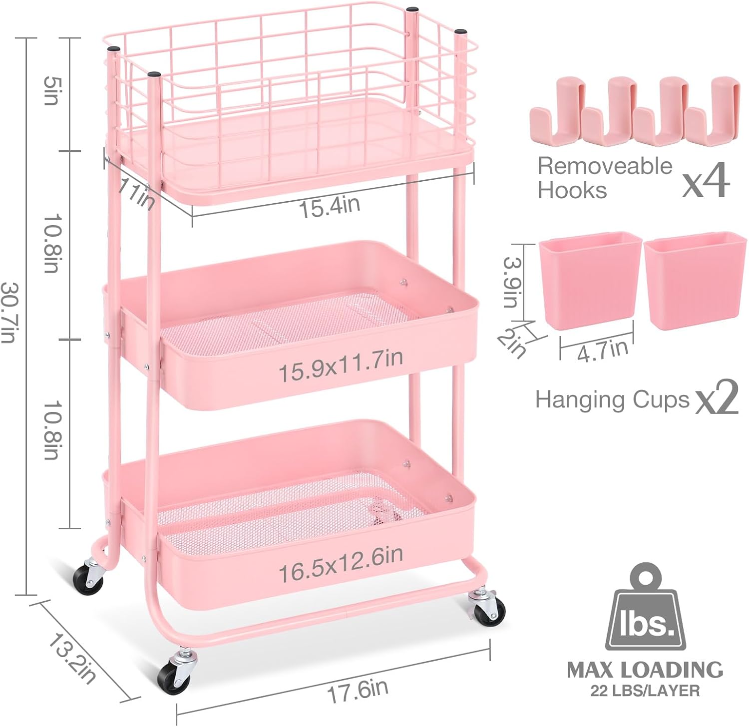 【Service and Guarantee】 The dimensions of this rolling storage cart are 17.6″ x 13.2″ x 30.7″, If you encounter any problems or have any questions about our rolling storage vehicles, please feel free to contact us.