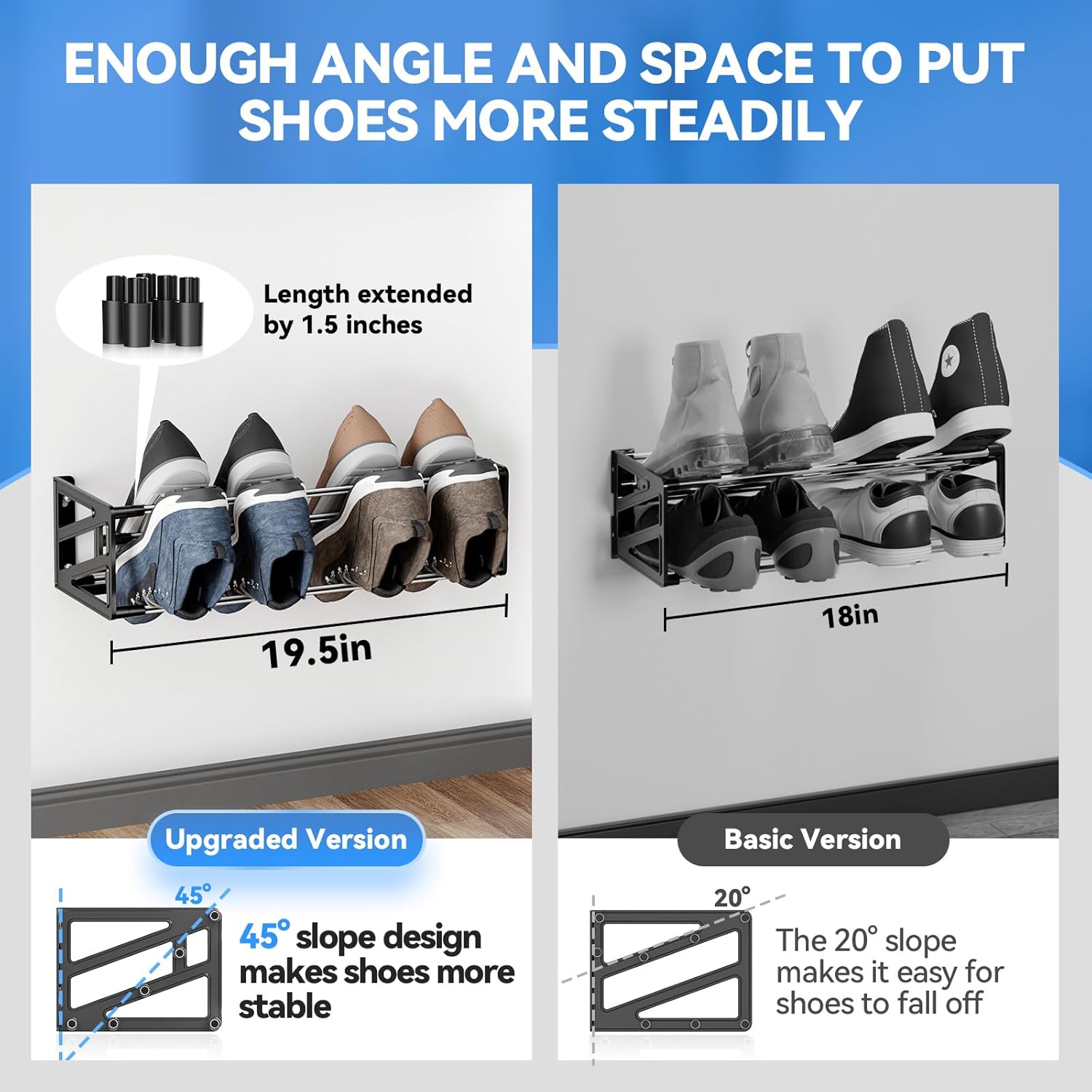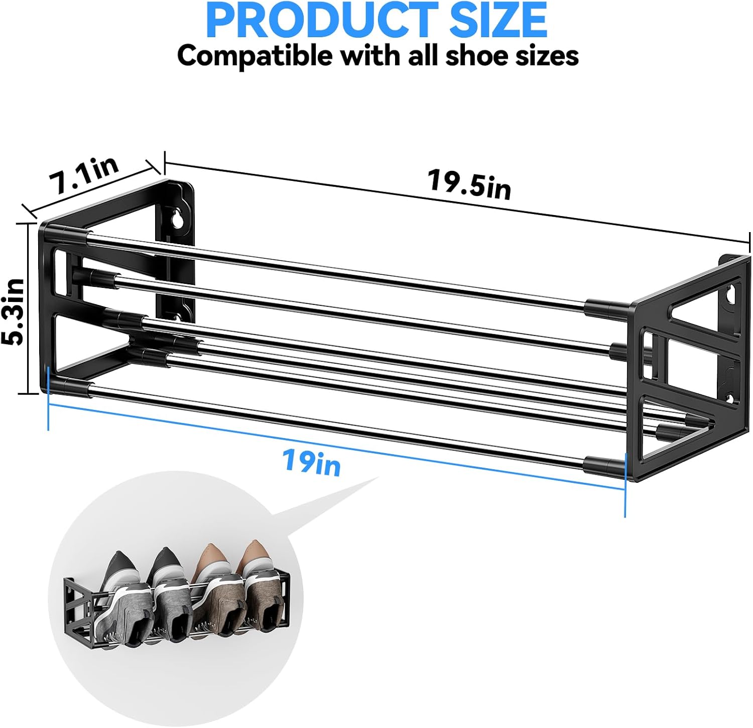 Sturdy Door Shoe Organizer:Our shoe rack features a high-quality stainless steel main frame and rectangular side frames for enhanced stability. It’s dustproof,waterproof,and rust-resistant. Each shoe rack can hold 4 pairs of shoes such as sneakers,high heels,flats,slippers and more