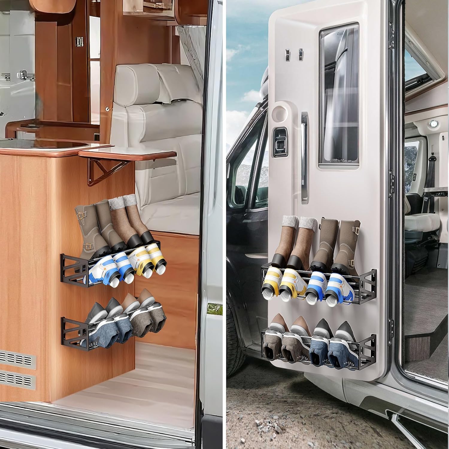 Multi Functional:Use it behind doors,in bathrooms,kitchens,pantry,or even in RVs, trailers and campers.Its versatile design makes it a must-have for any space.This mini shoe rack only requires 7 inches of space