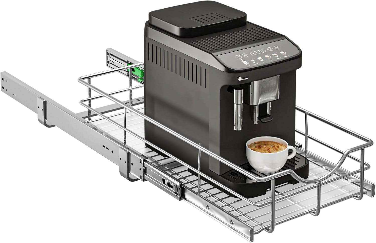 【Premium Material】This pull out cabinet shelf is made of high quality steel, heavy-duty and durable, load-bearing. The pull-out cabinet organizer offers a sturdy, noiseless, and smooth glide for easy access to kitchen essentials