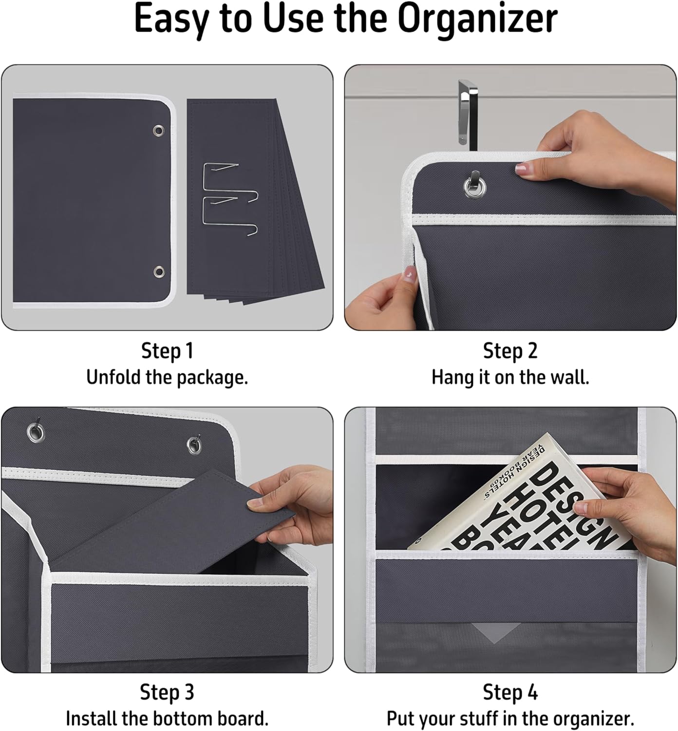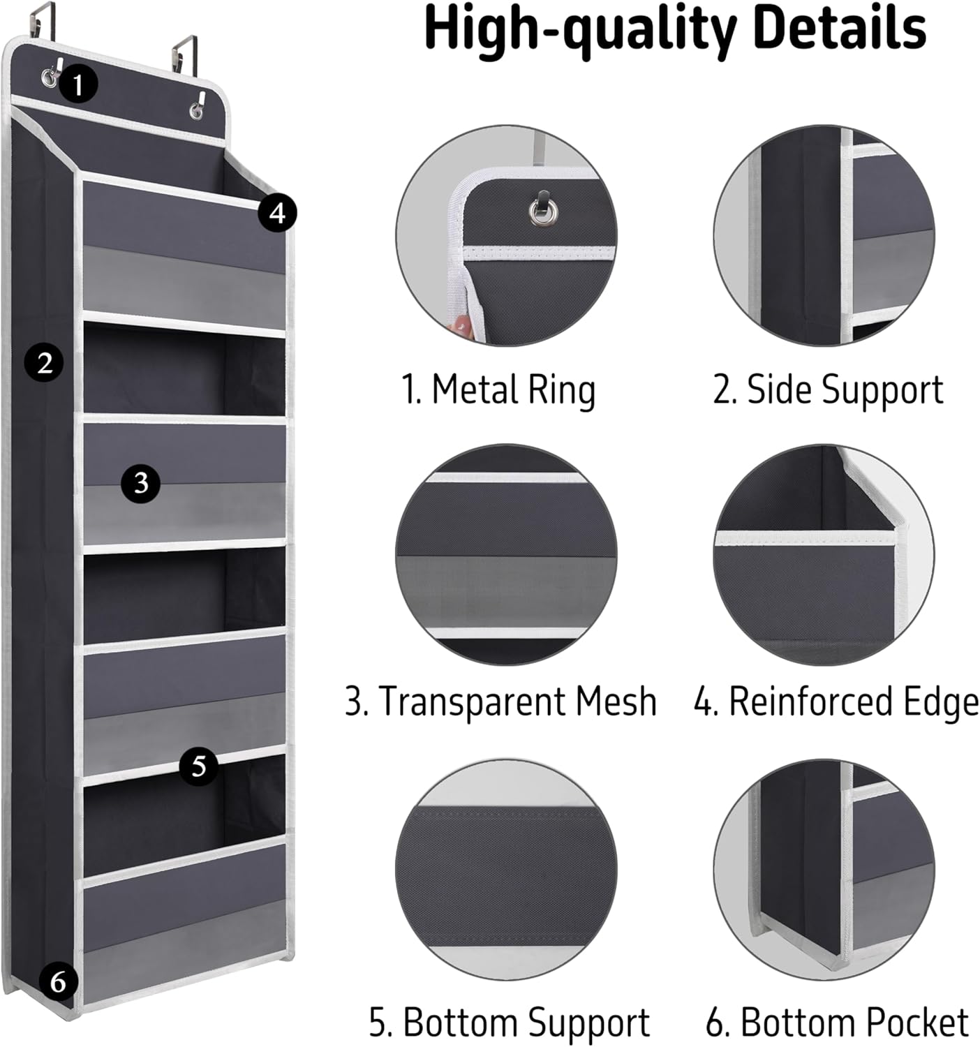 EFFORTLESS INSTALLATION – No hardware required; simply hang the organizer using the adjustable metal hook that fits most doors, ensuring a hassle-free setup process.
