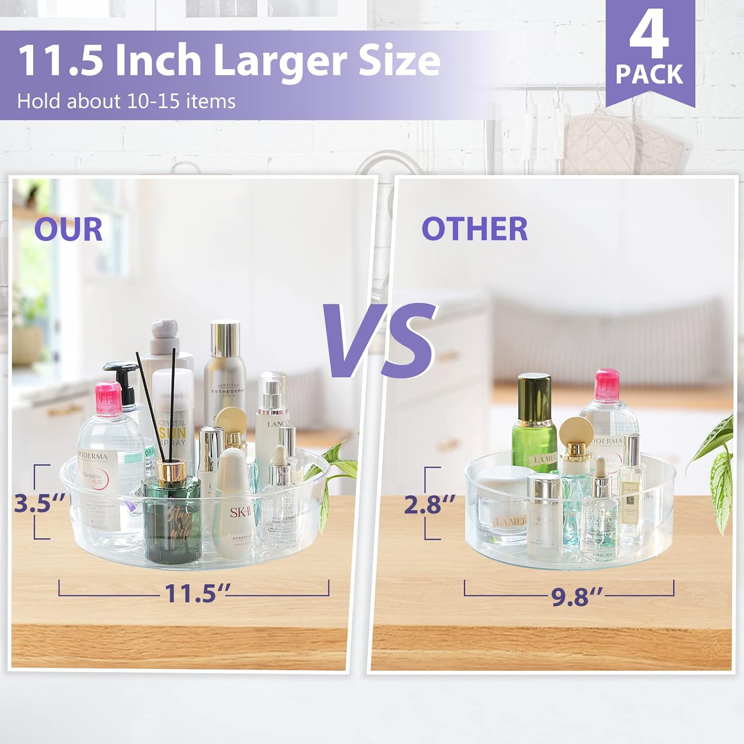 LARGE SPACE & RAISED EDGE – Guzon pantry lazy susan is upgraded with 11.5 inch larger size, big enough to hold lots of different items. And the high edge can protect items stay in place and prevent them from falling down while the container is spinning, very sturdy