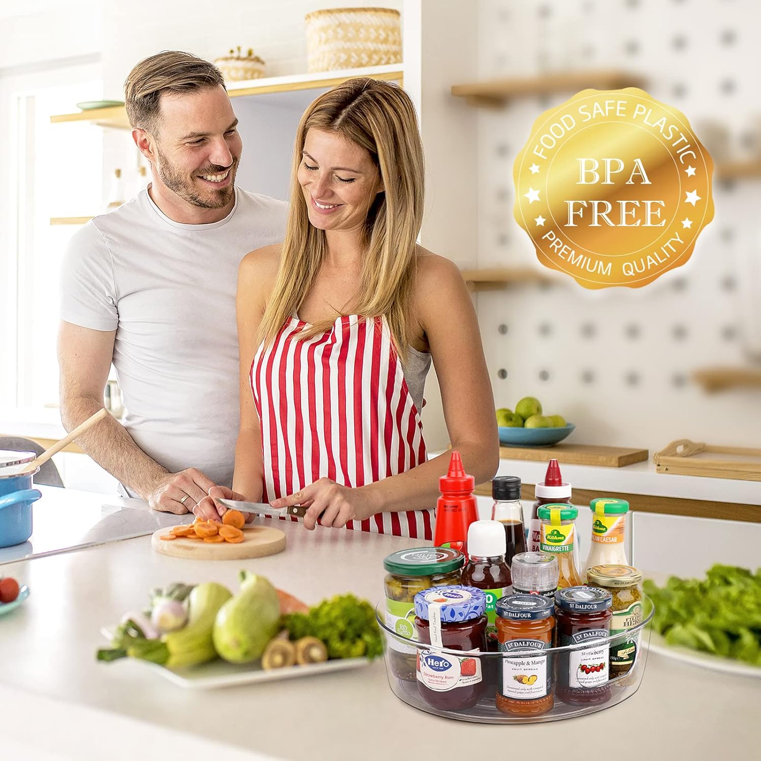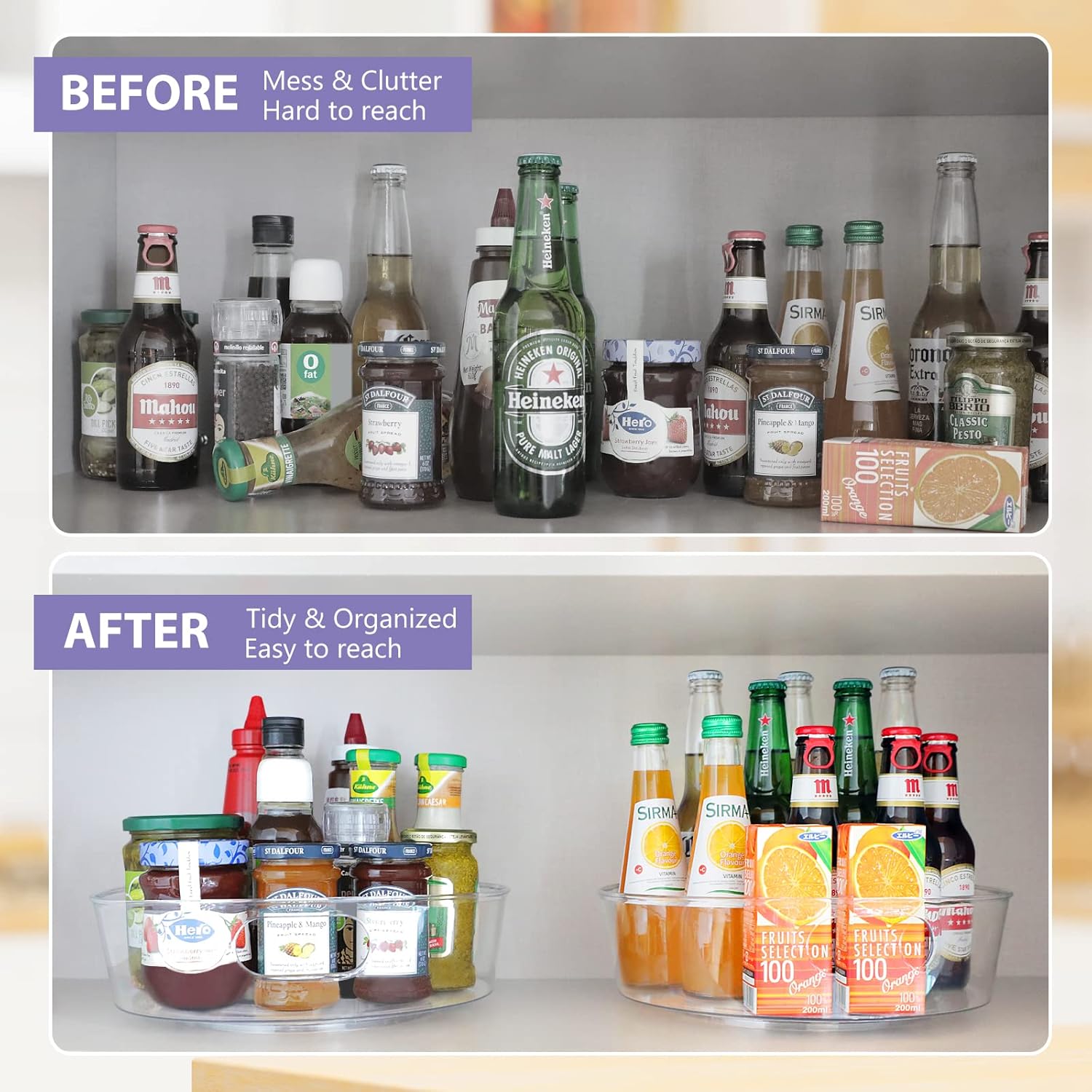 SAFETY & HIGH QUALITY – This lazy susan cabinet organizer is made of premium durable PE and BPA-free, very fall resistant, offering a long-term durability and safety for food, which is easy to clean with mild soap and water. NOTE: DON’T PUT IT IN DISHWASHER