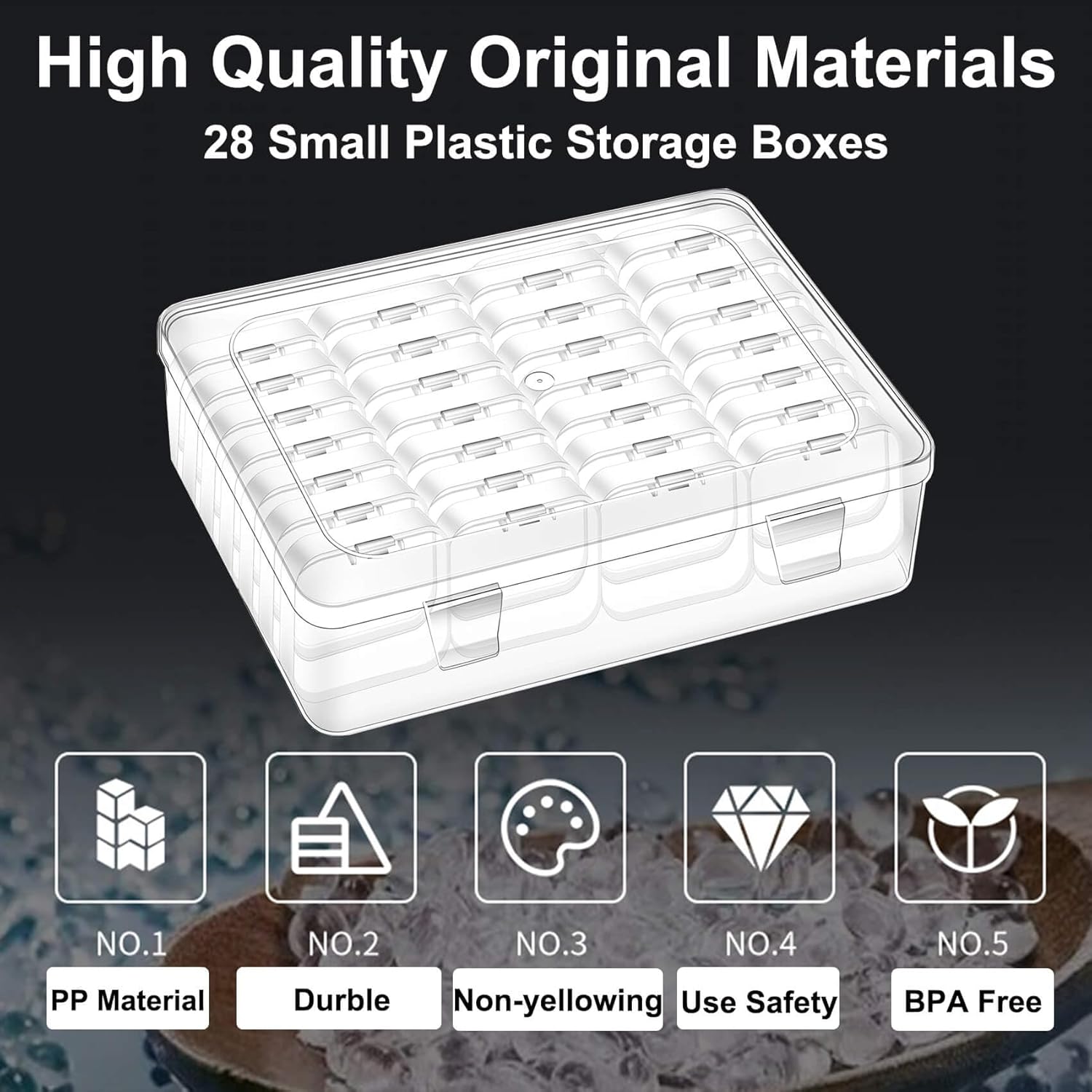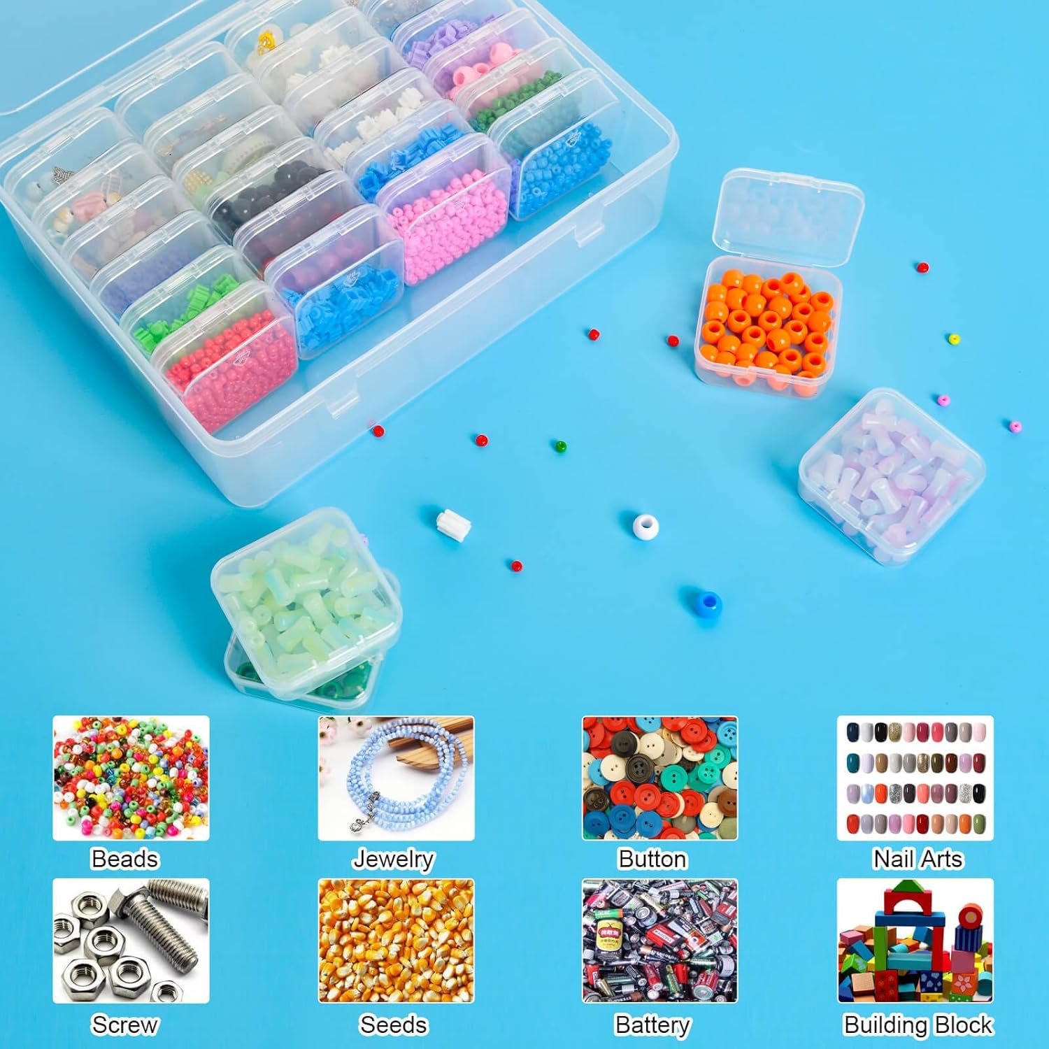 WIDELY USED: These cute little plastic storage boxes are a necessity in our work and life. The hinged flip-top design makes it easy to open the box. It’s great for organizing small items, small parts, crafts, bracelet beads, screws, rhinestones, diamond paintings, clay beads, seeds, fake nails, fishhook, button, snaps, pins, hair clips, coins, office supplies, ear studs, diamonds and jewelry. This clear plastic organizer box is also a gift for family, friends, and colleagues