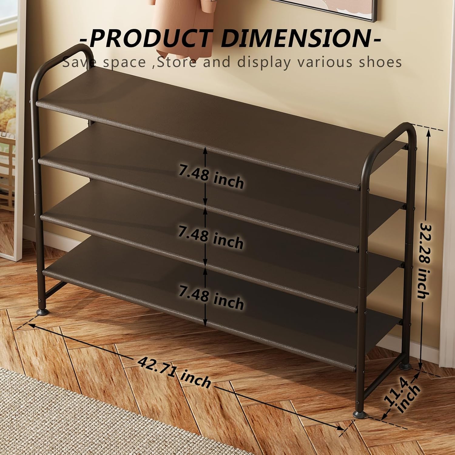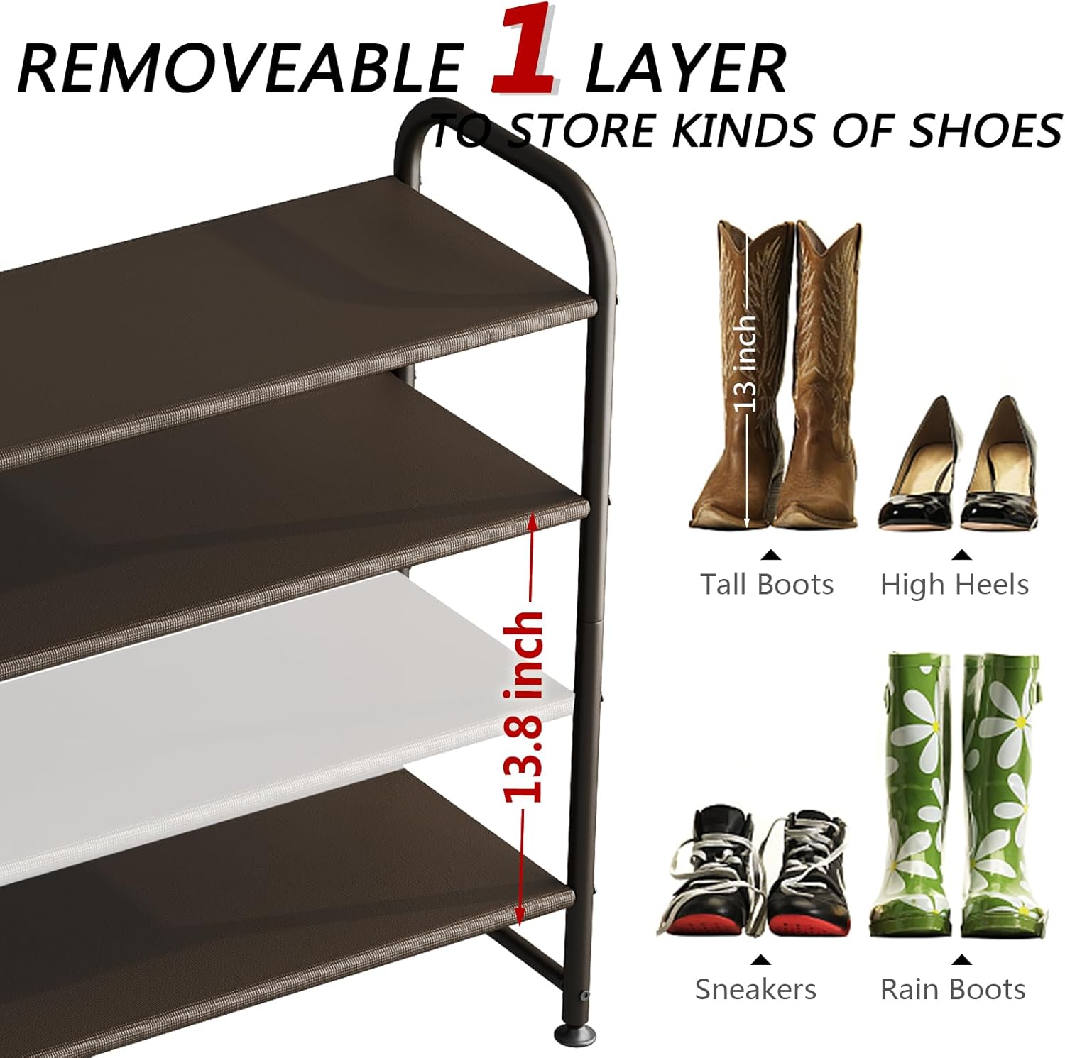 【Multifunctional Shoe Cabinet Organizer】 : This 4-tier shoe rack is designed with shelves of same heights, and removing a row to change 4 tier to 3 tier to fit different kind of shoes, even long rain boots,high heel.It isthe ideal storage solution suitable for any narrow or small space for hallways, closets, dorms,garages, etc.