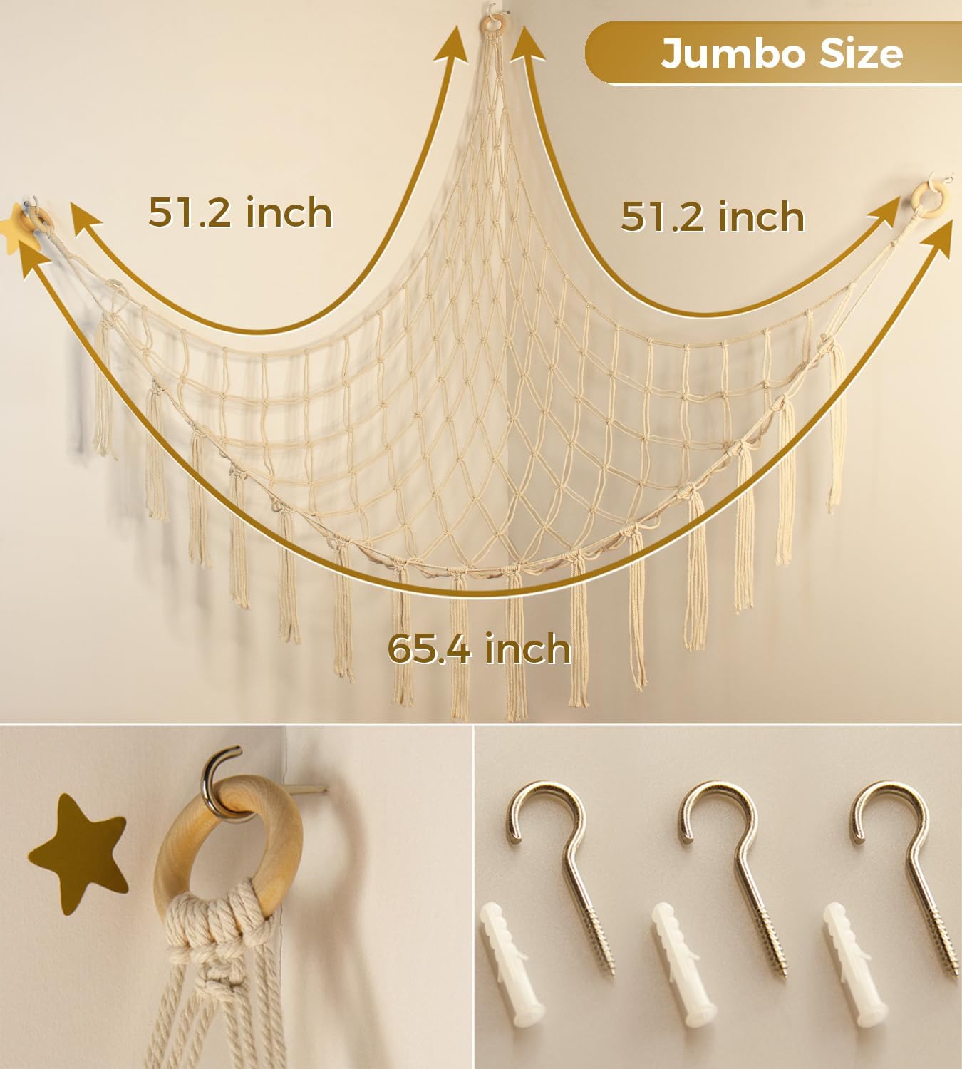 Practical yet Pretty Cute – Unlike the plain toy net, this handmade toy hammock net for stuffed animals not only keeps the plushies organized well, but also looks super cute as a beautiful room decor piece with a bohemian vibe when hung up.