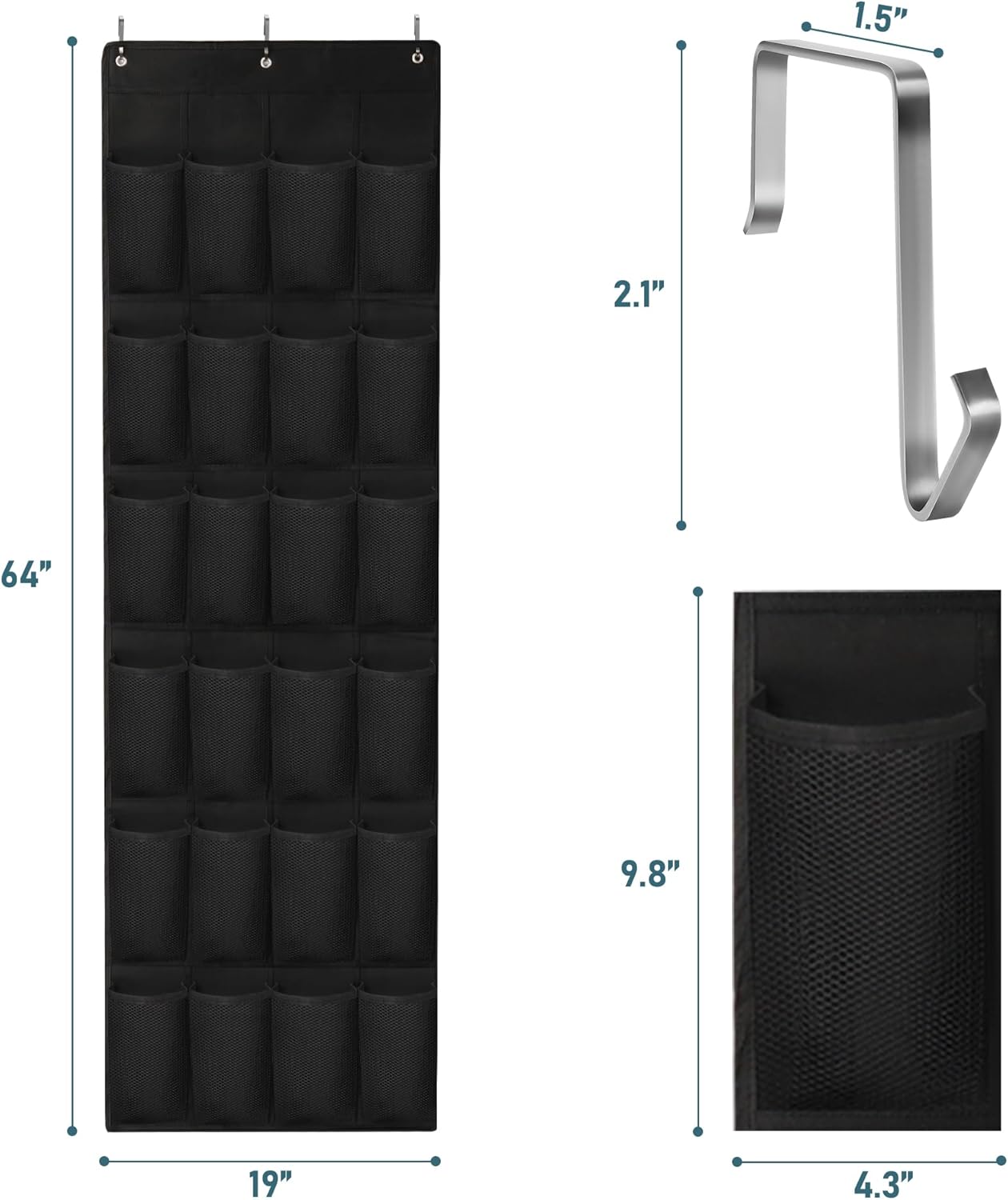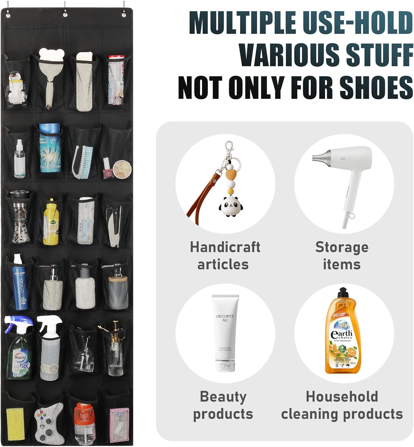 NOT JUST FOR SHOES: Measures 62 by 19 inches with each pocket measuring 7.8 by 4.3 inches,over the door shoe rack superior choice for storing nearly anything.Easily store crafting supplies, pantry items, beauty items, or household cleaning supplies in a highly organized and efficient manner.