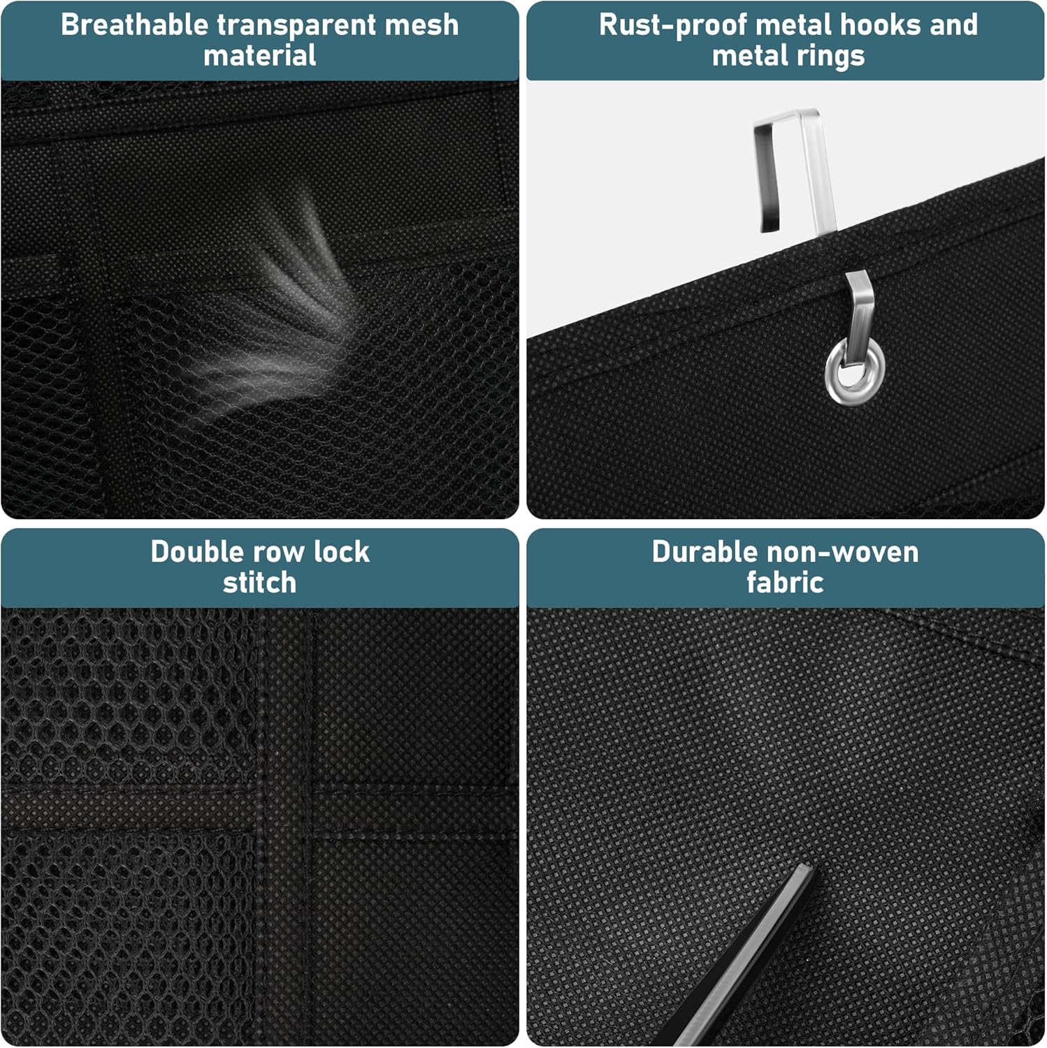HIGH QUALITY BREATHABLE MATERIAL: This hanging shoe rack for door has high breathability, and the mesh pocket promotes air circulation, allowing the shoes to dry quickly. In addition, the transparent mesh fabric makes it easy to quickly find each pair of shoes.