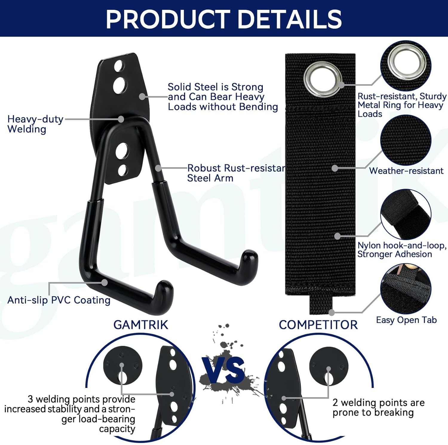 Gamtrik is a professional brand dedicated to providing top-notch and diverse products. Our mission is to deliver excellent experiences and practical solutions to our customers. Whether you need to organize items at home, arrange tools in your garage, or seek efficient storage solutions for your office or commercial space, these garage bicycle hooks can meet your needs. We persistently pursue quality and innovation, bringing convenience and tidiness to your life and work environment.
