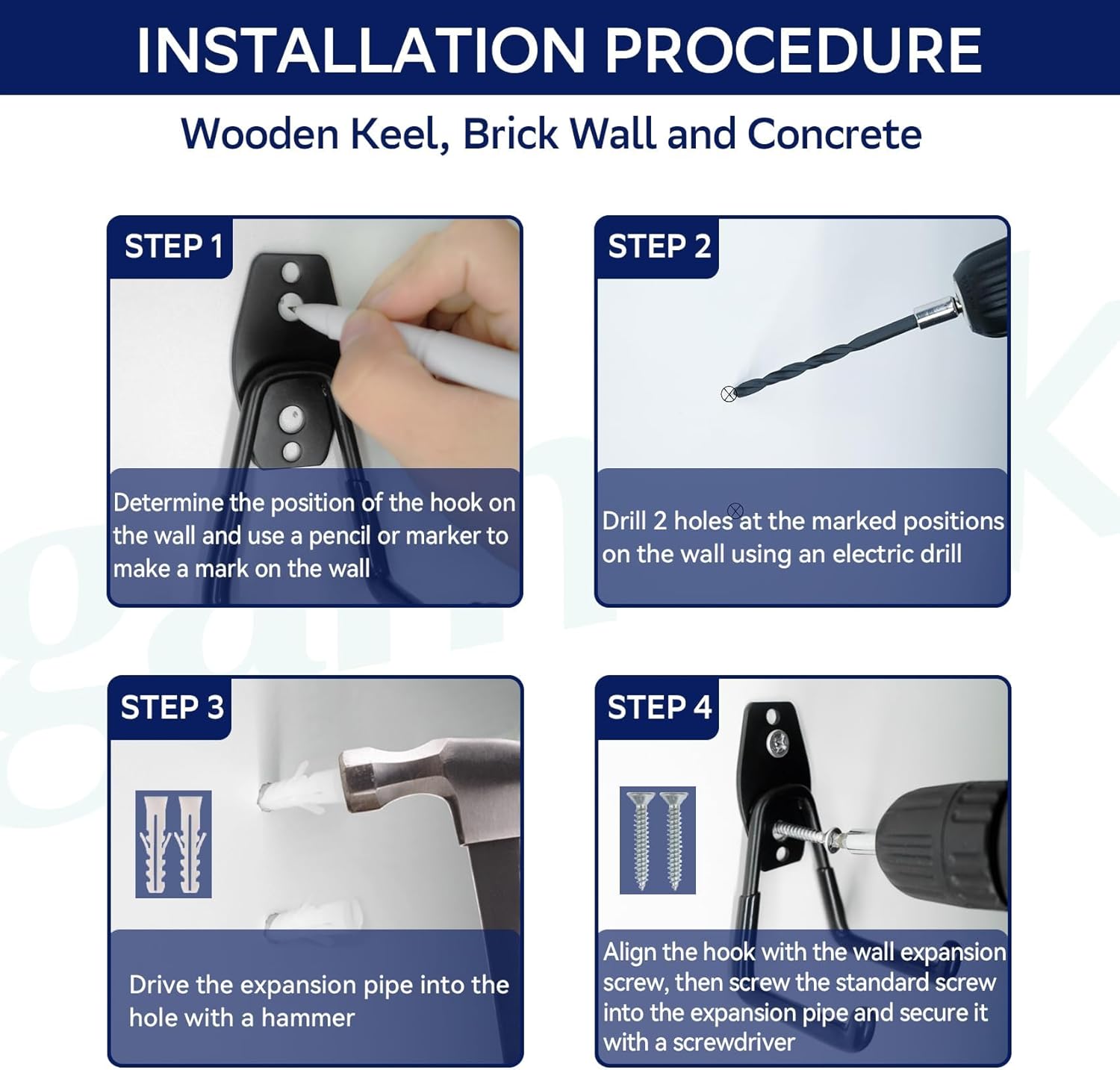 【Easy Installation】The package includes an installation manual. Following the guidelines, you’ll only need a hammer or screwdriver and the 32 sets of screws and anchors we provide to quickly install the wall hooks on drywall, wood, or bricks. Unlike other heavy duty hooks, three welding points between our heavy duty garage hooks and the base ensure higher safety, You don’t need to worry about the backplate splitting or detaching. We are the ideal choice for garage tool organizer