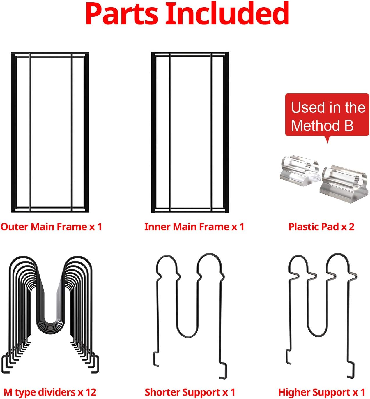 Solid Construction: Made of heavy-duty iron with a spray-painted finish; pots and pans rack features 14 adjustable dividers; deeper U-shaped grooves on dividers provide extra stability for your cookware