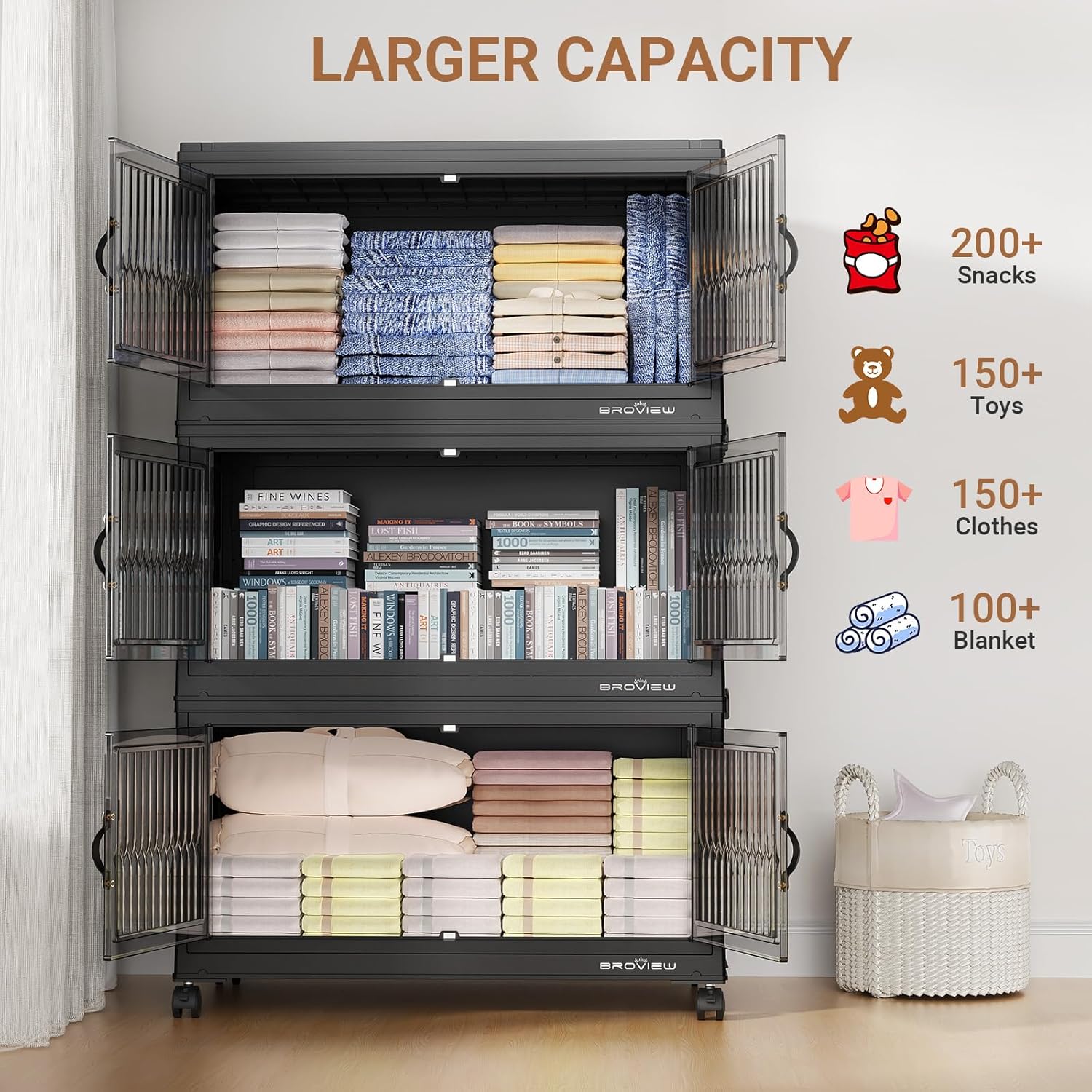 【5 Mins Easy Assembly】The stackable storage bins open front only take 5 minutes to assemble the entire storage cabinet. Thanks to the foldable and stackable design, Broview v8 stackable storage bins can be disassembled and folded at any time when not in use. A great tool for storage in small rooms in apartments or for moving!