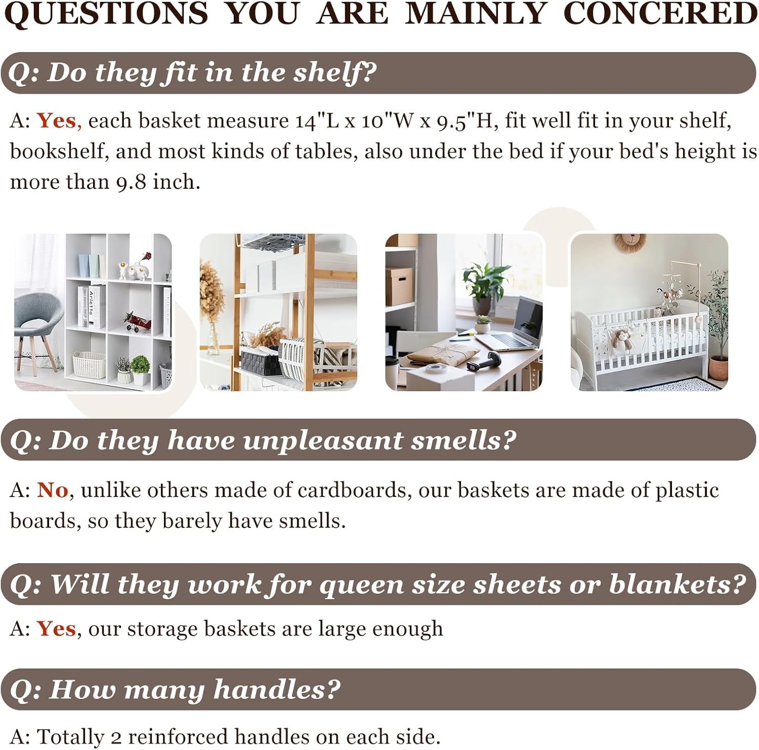 【MULTI-PURPOSE】 Our 4 pcs closet storage bins are home essentials to save storage space and keep everything organized. Large enough baskets for organizing clothes, kid’s toys, nursery room items, extra linens, laundry, towels, sheets, pantry and more.