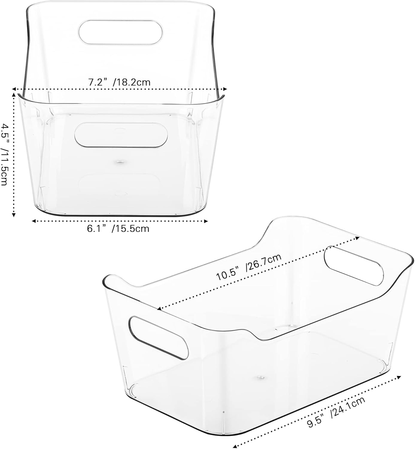 Customers find these storage bins perfect for organizing pantries and small to medium-sized items, with one mentioning they hold 6 regular 14oz cans. The containers are well-made, with one customer noting they don’t bend, and customers appreciate their clarity, allowing them to easily see what’s inside. Customers find them easy to use, with one mentioning kids can access them easily, and consider them good value for money.