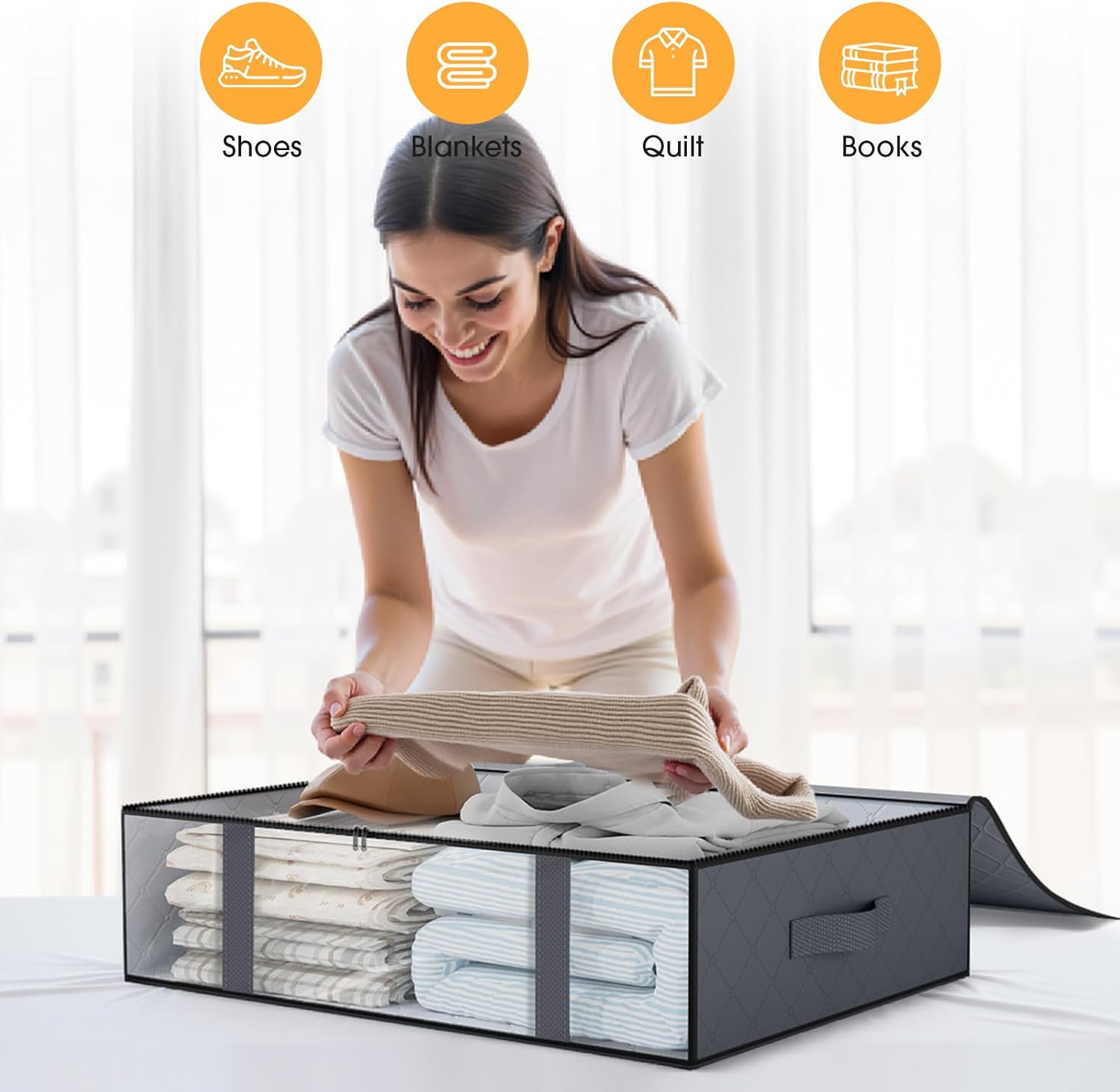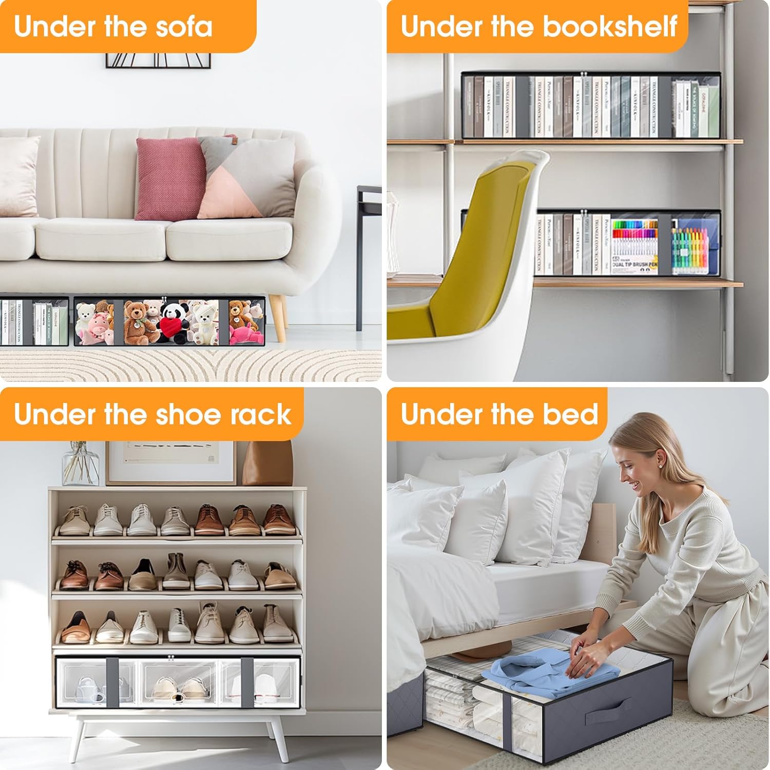 Multifunctional Storage Organizer:StorageRight under bed storage containers for organizing fits perfectly under your bed. From blankets and pillows, to out-of-season clothes and shoes, to books! These storage bags have sturdy construction and can handle all types of storage needs