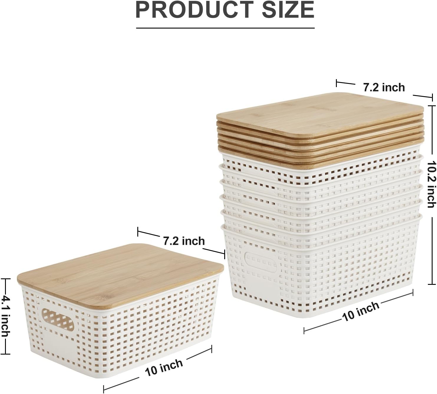 【High Quality materials】This plastic storage bins with lids are crafted from durable and lightweight plastic and come with a natural bamboo lid. Perfectly sized for storage at 10 x 7.2 x 4.1 inches, the set of 6 containers offers ample storage options to keep different items neatly organized, making decluttering a simple and enjoyable task.