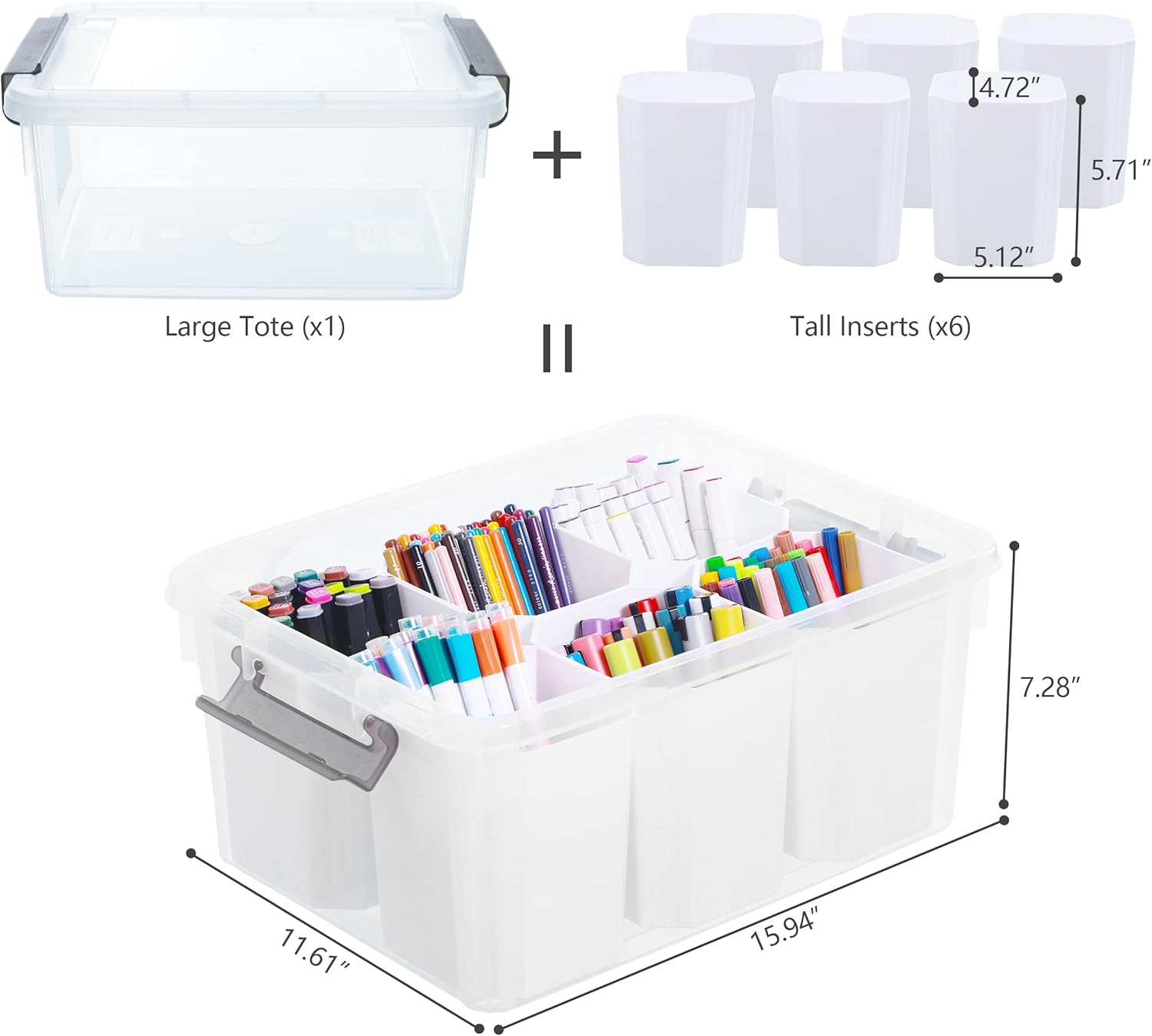 【Durable Construction】Including 1 storage bin and 6 inserts. This box measurement is 15.94″L x 11.61″W x 7.28″H/17 quarts. Single insert measurement: 5.12″L x 4.72″W x 5.71″H/1.7 QT. Made of premium durable and thicker PP5 plastic so you don’t have to worry about chipping. This can make it last a lifetime.