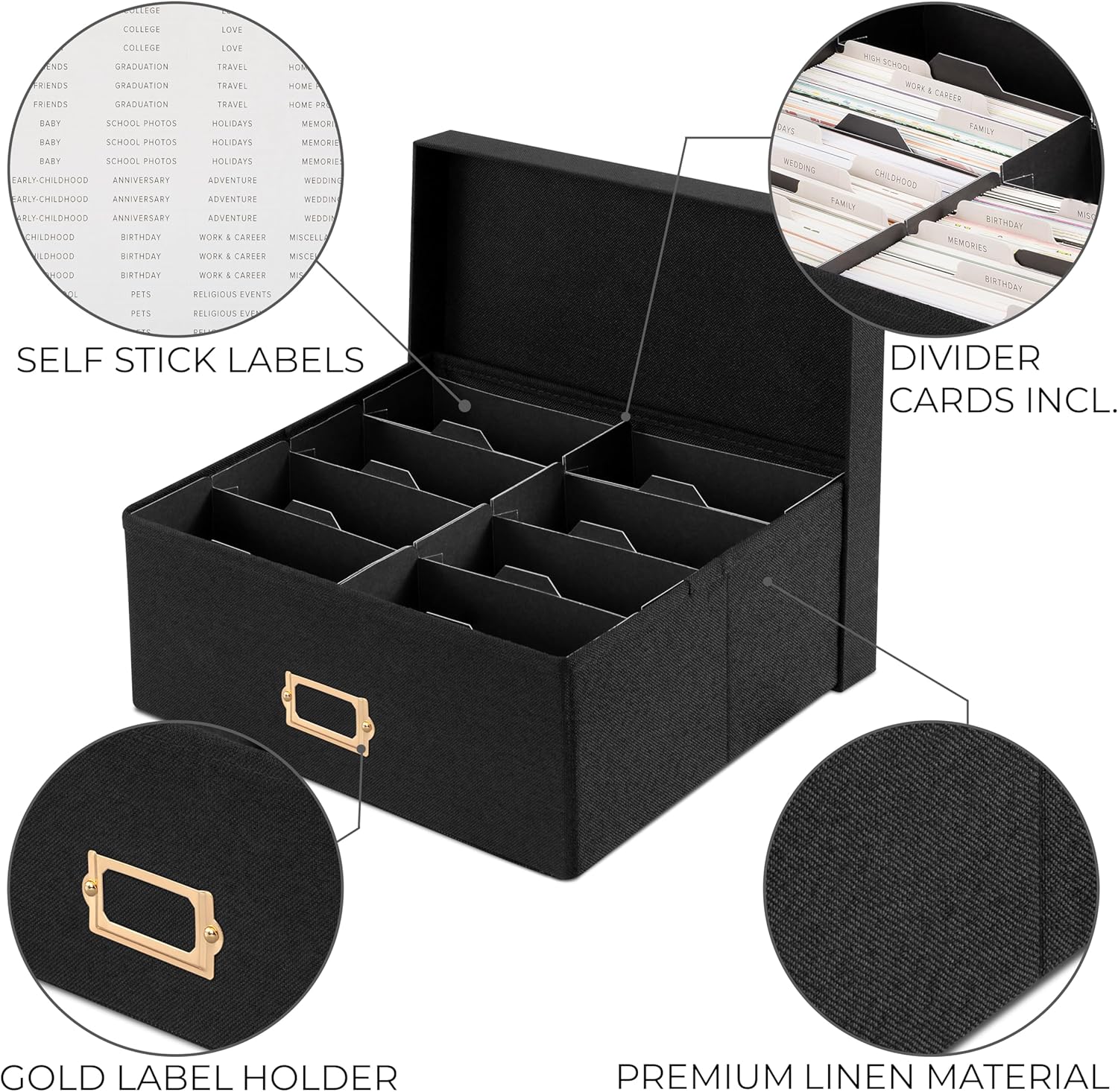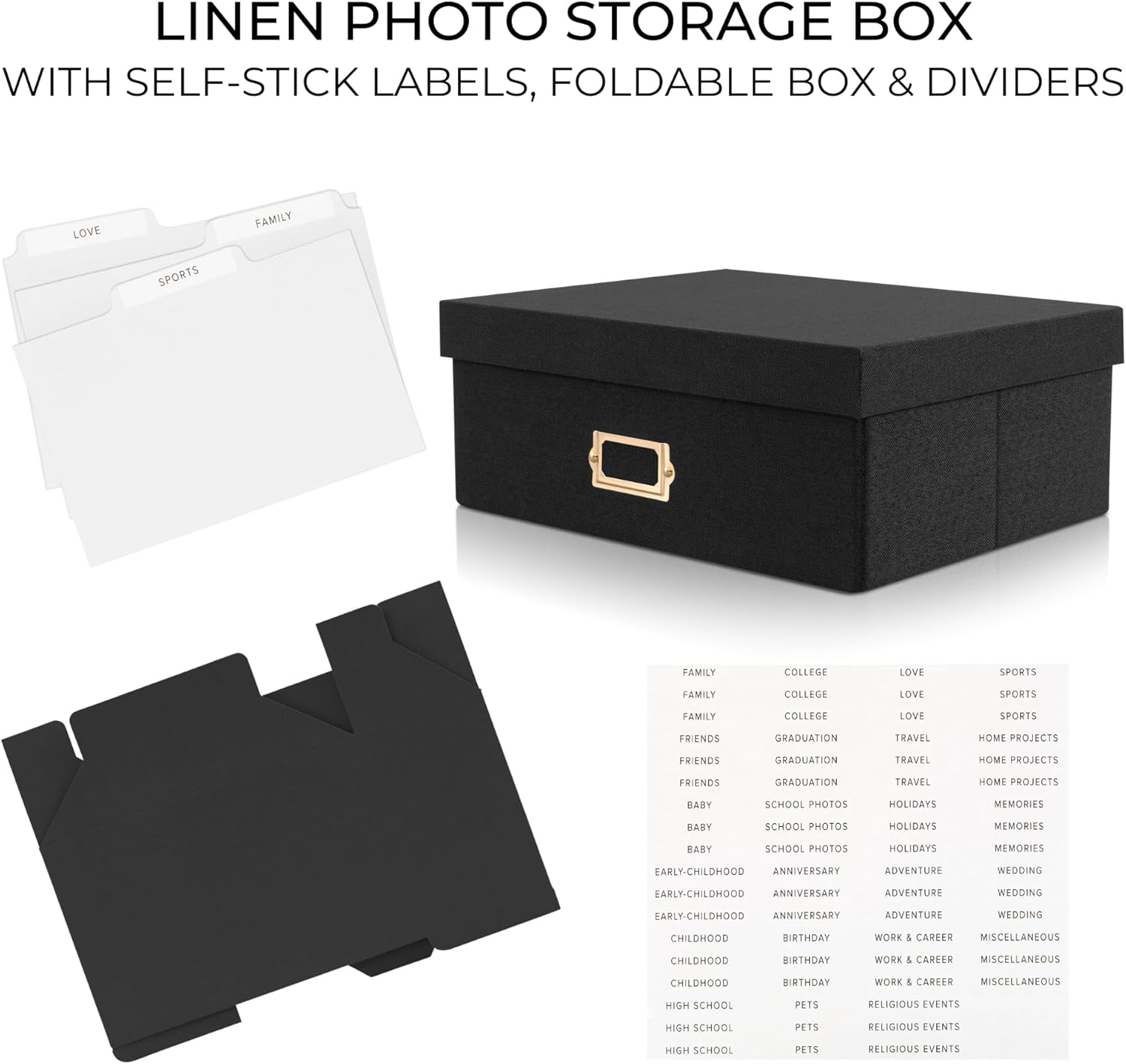 Make Storage Look Effortlessly Chic: Add a touch of sleek sophistication to your space with the beautiful photo storage containers. The classic black linen offers a bold and modern aesthetic, turning simple organization into a design statement that fits any room