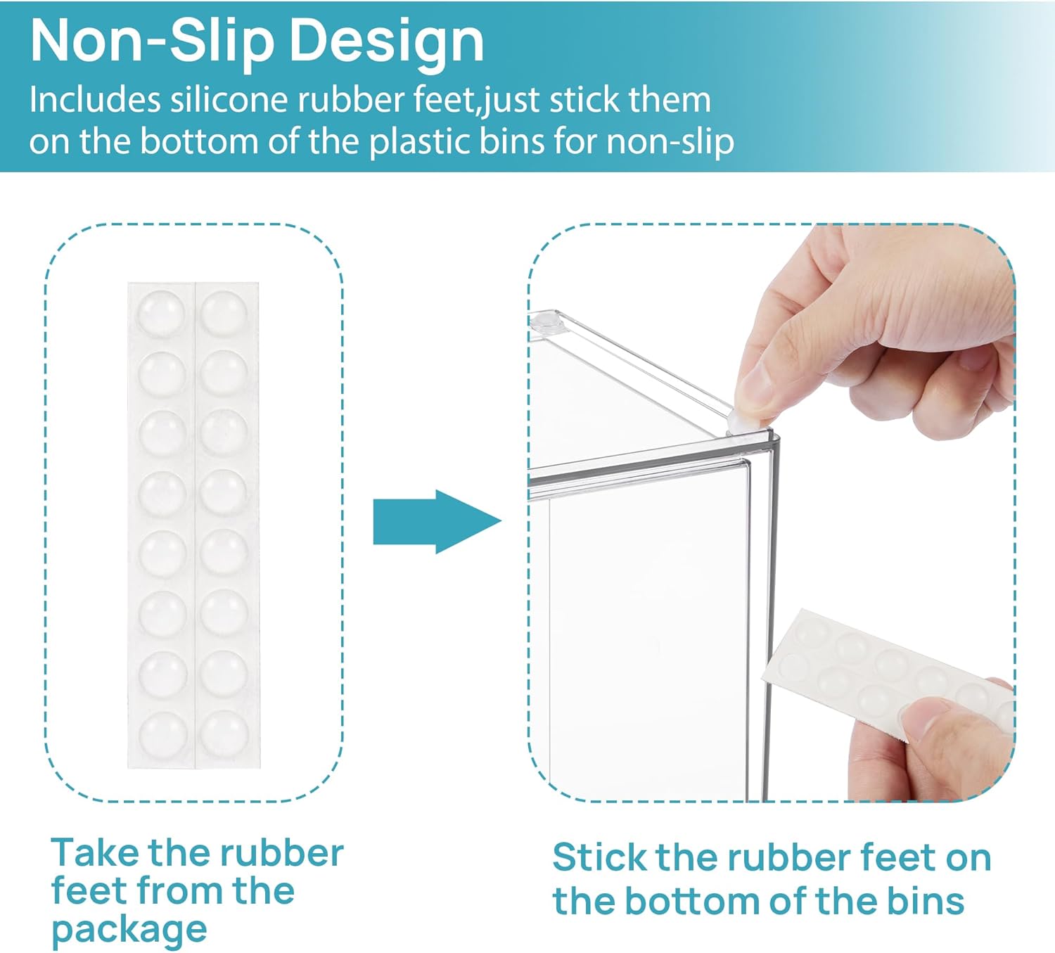 [Built-in Handle and Non-Slip] Clear organizing containers are designed with pull-out handles, it is convenient to store and take out items.Extra silicone pads are included, add the rubber sticker dots to the bottom,our storage drawers slides in and out very effortlessly and outer frame don’t move when pulled out the drawers.