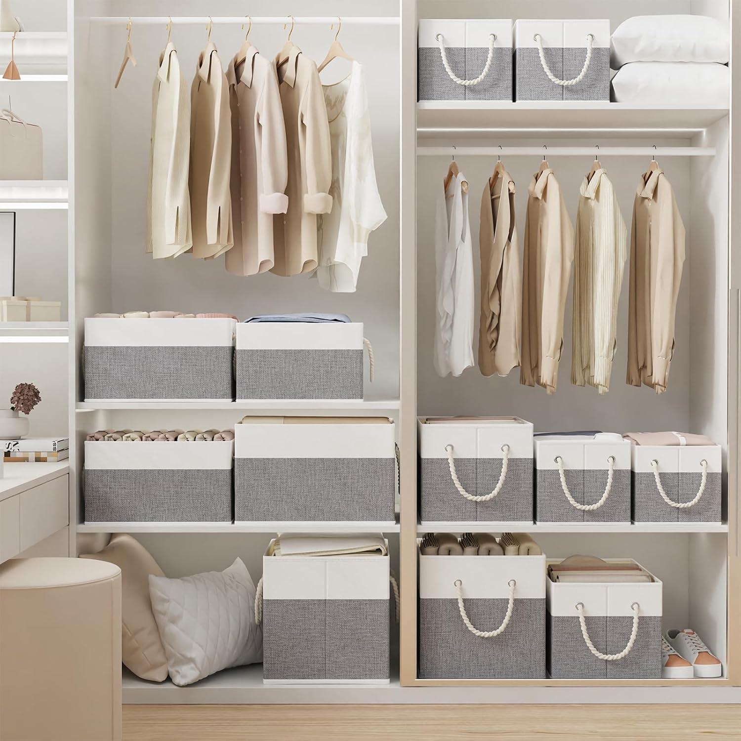 The thick, strong rope handles are easy to carry and pull from the shelves.