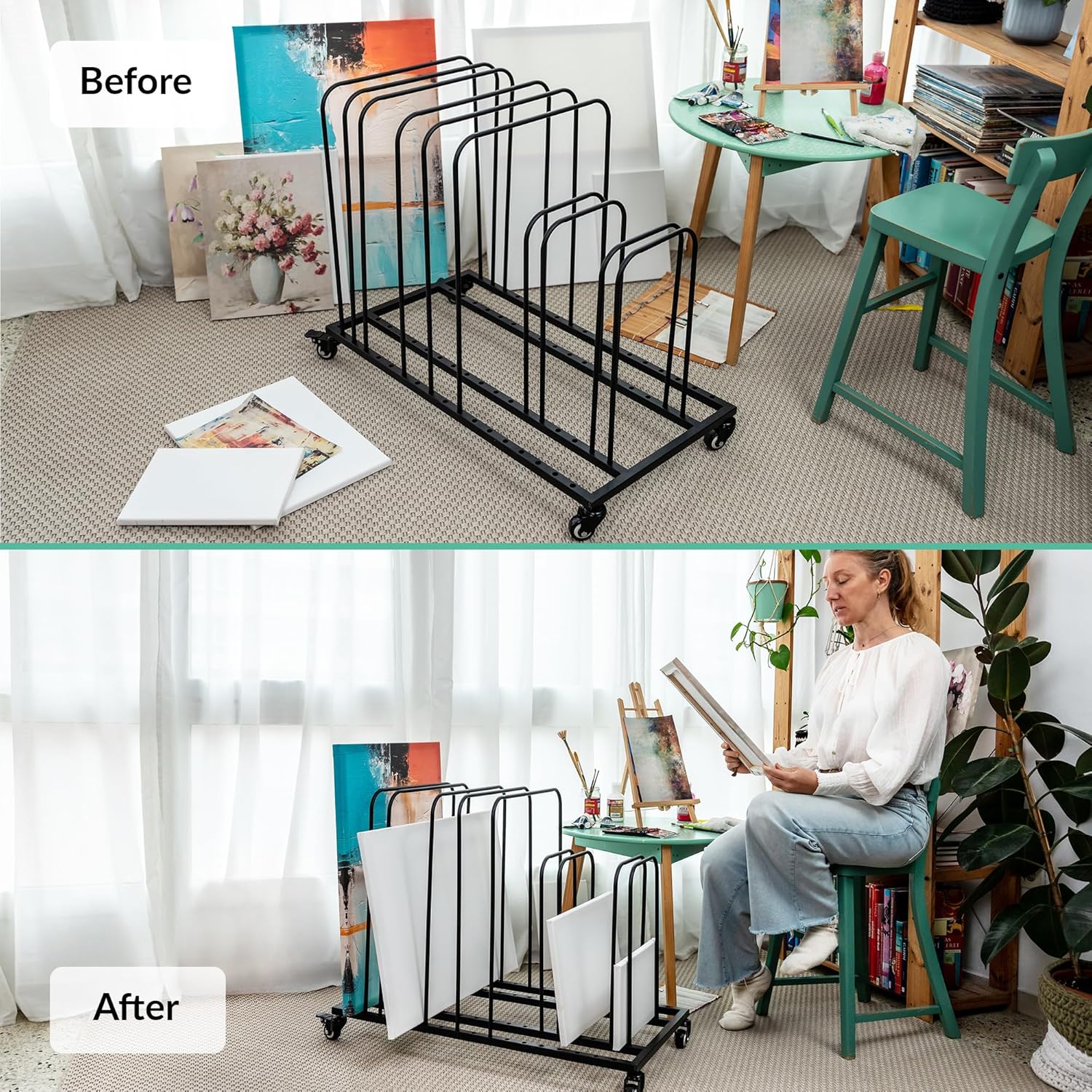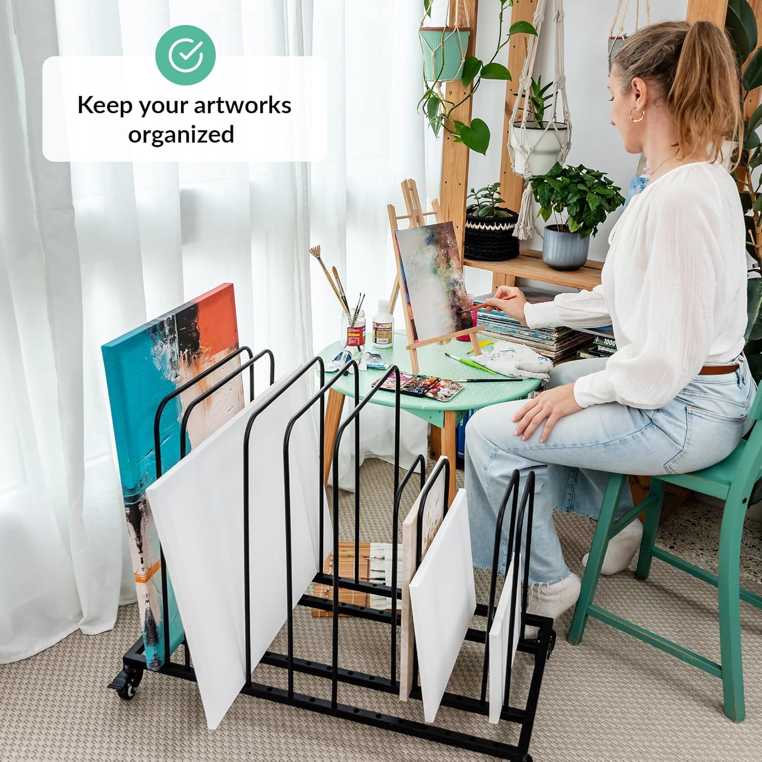 【PERFECT FOR HOMES AND STUDIOS】The art canvas storage rack can easily blend into any environment due to its sleek and elegant design. The canvas organizer is the perfect solution for storing artwork in your studio, classroom, or home.