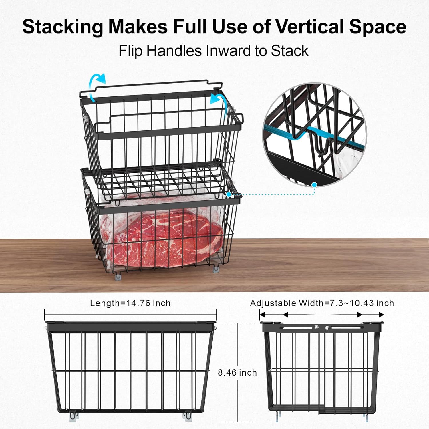 [Easy Assembly & Freezer-Safe]: Sturdy metal freezer storage bins snap together in seconds; The freezer baskets include plastic foot covers for stability and scratch-free installation in your deep freezer