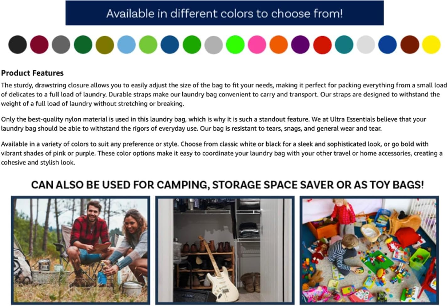 ABOUT US: At Ultra Essentials, we are dedicated to providing our customers with high-quality products that make their lives easier. Our commitment to innovation and customer satisfaction drives everything we do, and we are constantly striving to improve and enhance our product offerings. Whether it’s our Laundry Bag or any other product in our lineup, you can trust that it has been carefully designed and crafted to meet the highest standards for quality and functionality.
