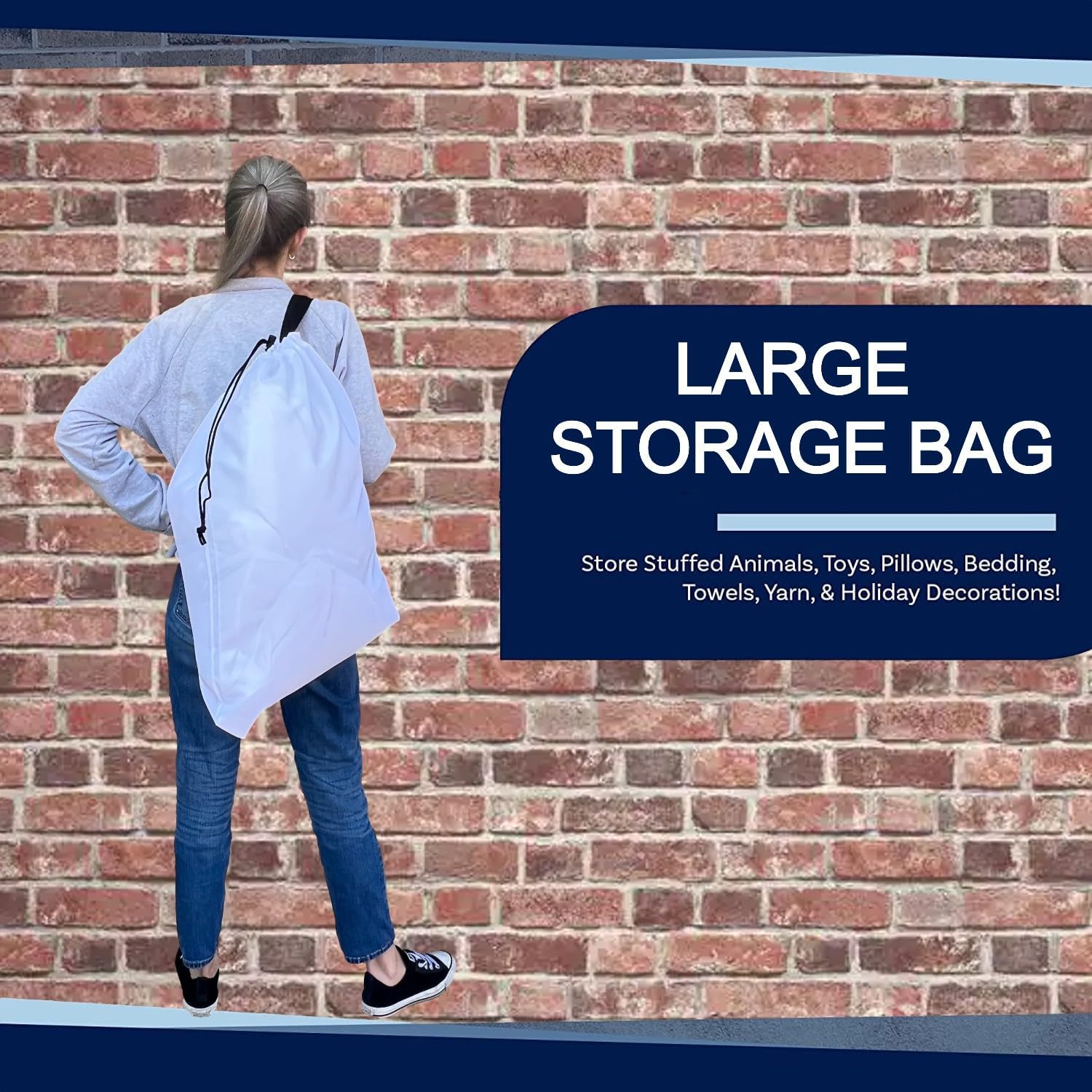 VERSATILE AND SPACIOUS: Use as a laundry hamper or to store off-season clothes, bedding, yarn, toys, towels, and even holiday decorations. Our 22 X 28 inch large design can hold up to 2 loads or 35 pounds of laundry. It also features a convenient drawstring and self-locking closure.