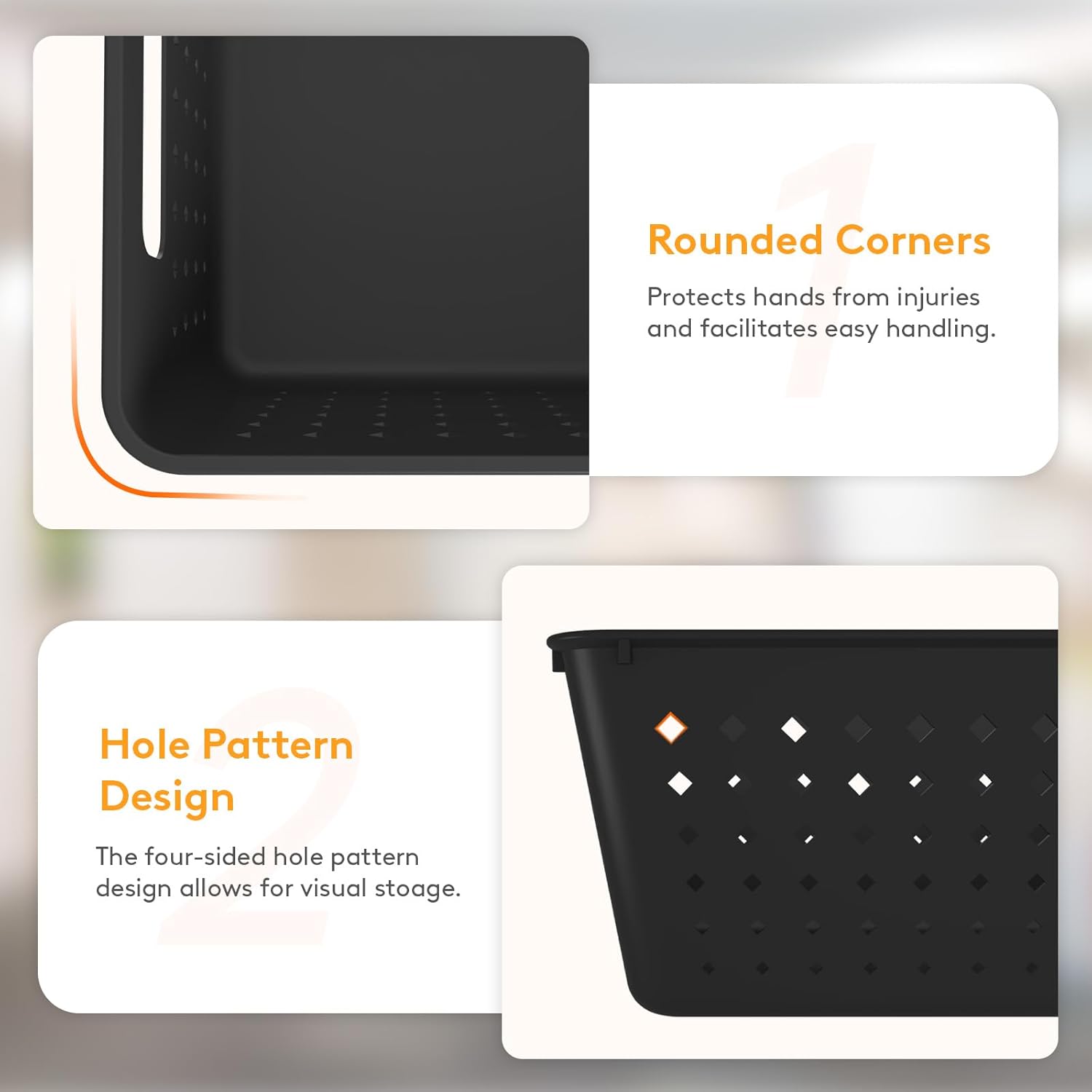 Premium Material: Crafted from premium PP material, these plastic storage bins guarantee unmatched long-lasting performance. The black opaque material skillfully conceals stored items, granting you both privacy and a visually organized space.